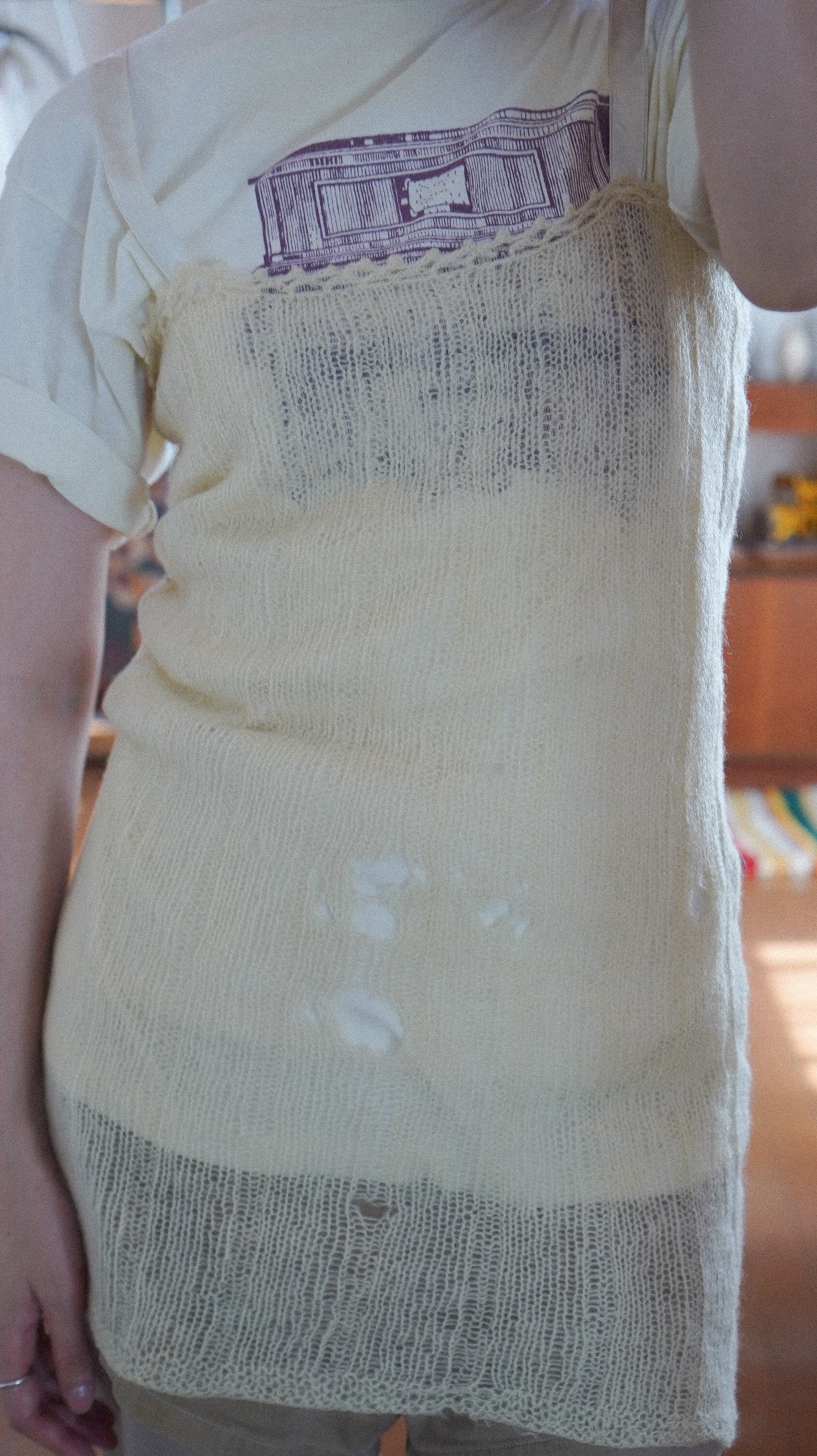 Tシャツやシャツの上に重ねたり、肌に直接合わせてもgood!/handmade knit camisole ivory