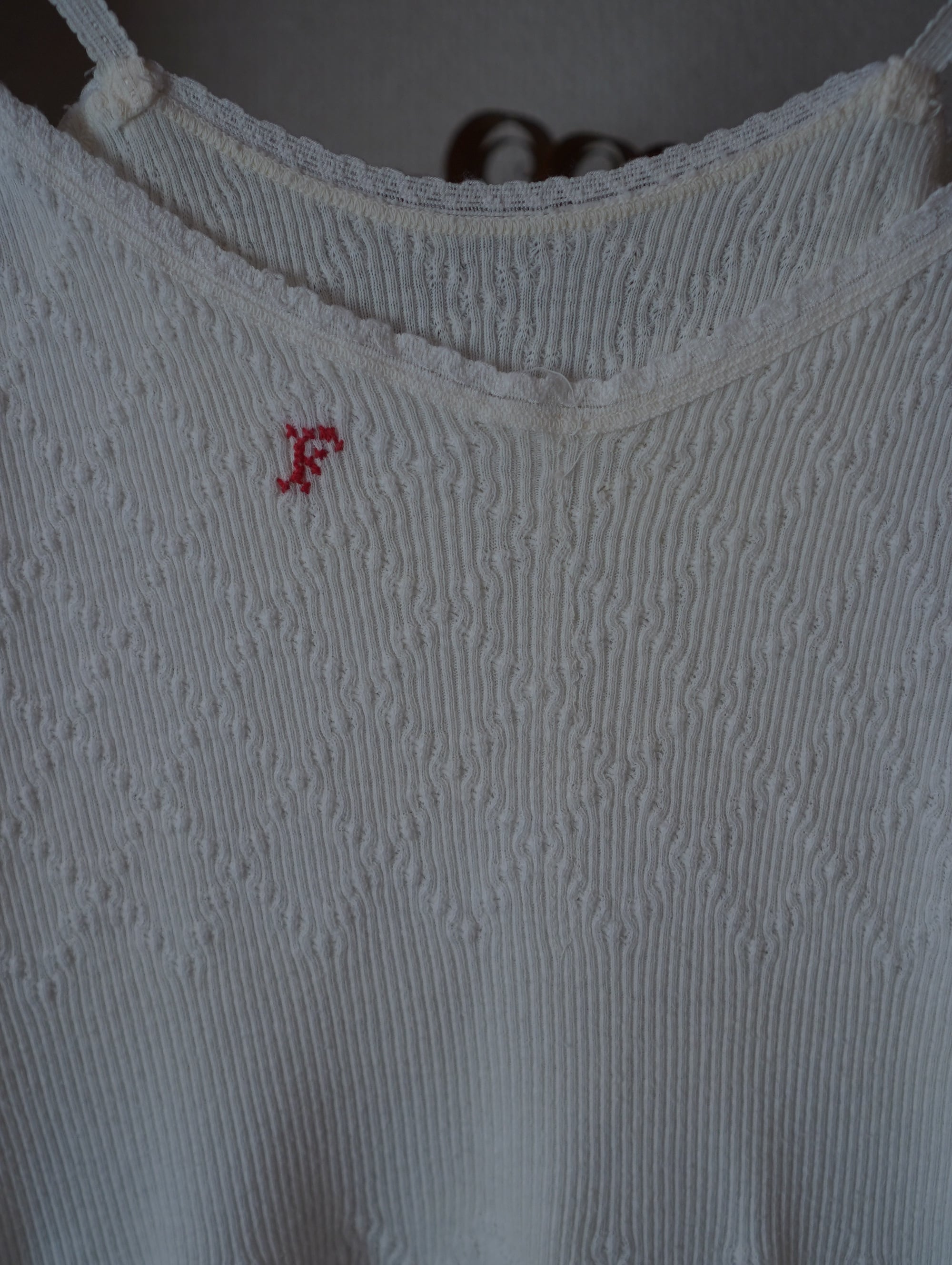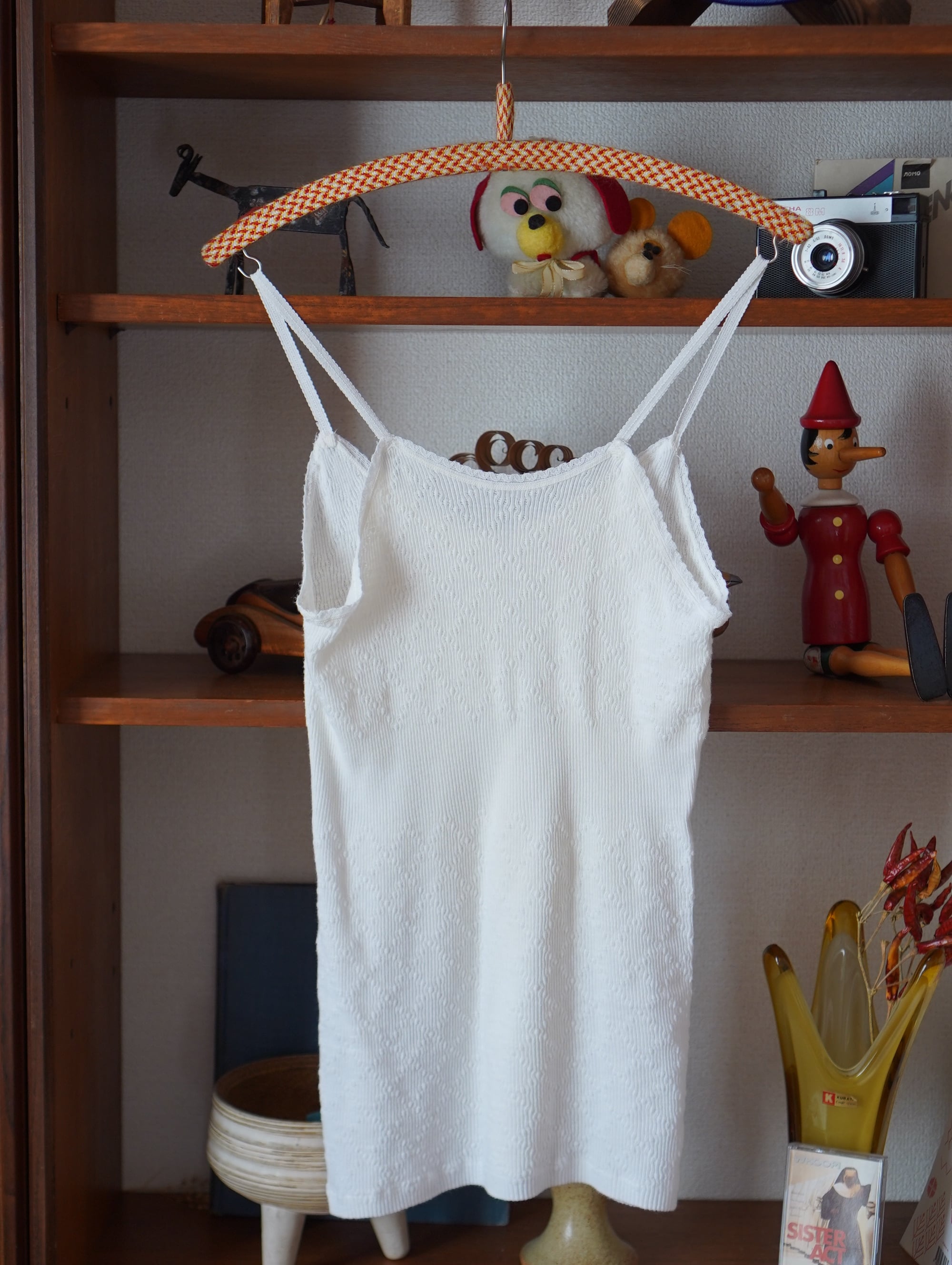 やわらかな編み模様と、小さな赤い刺繍がいとおしいコットンキャミソール。