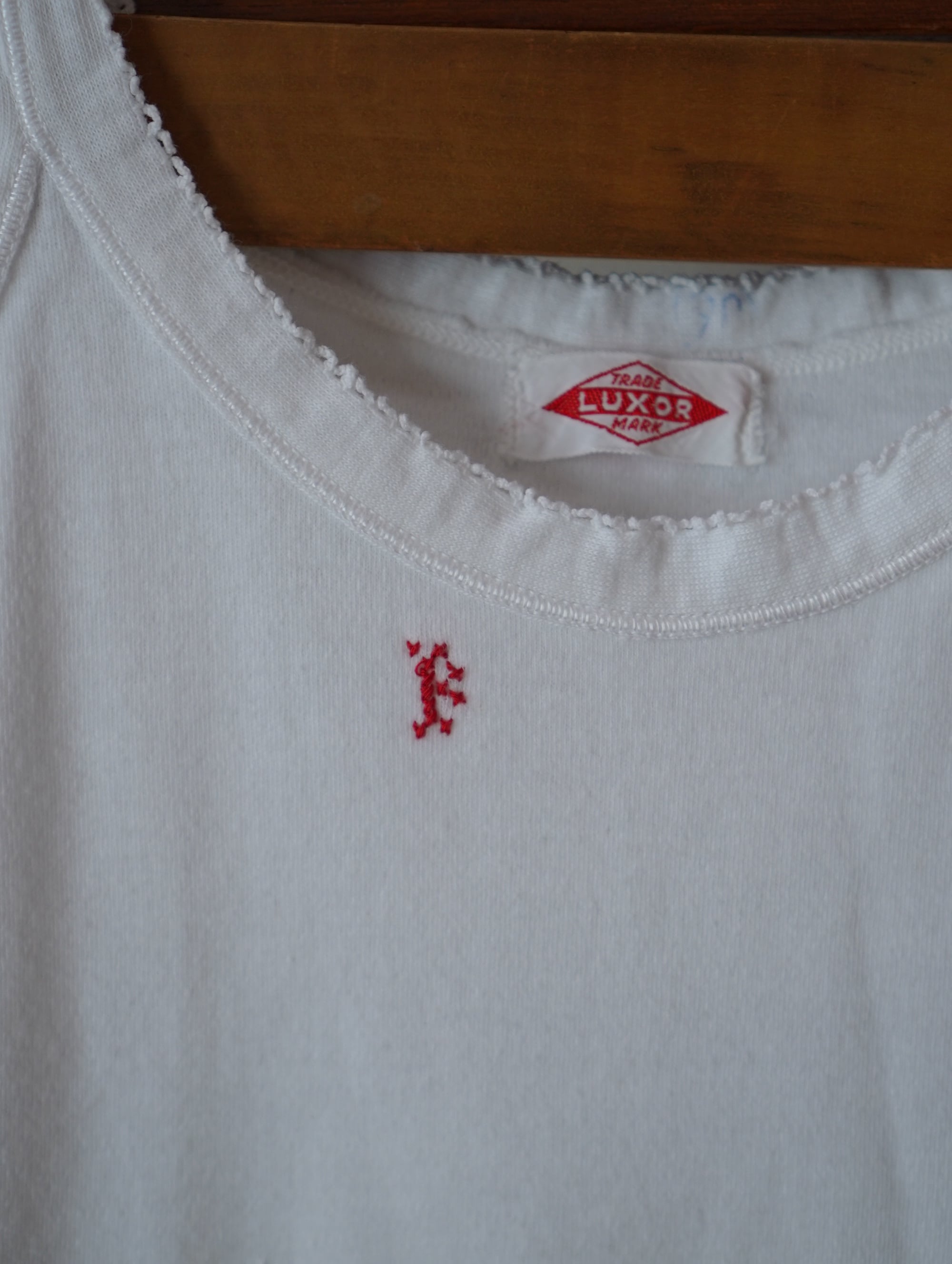 日常にそっと寄り添う、静かな美しさを持った一枚。/vintage cotton camisole lace trim red embroidery