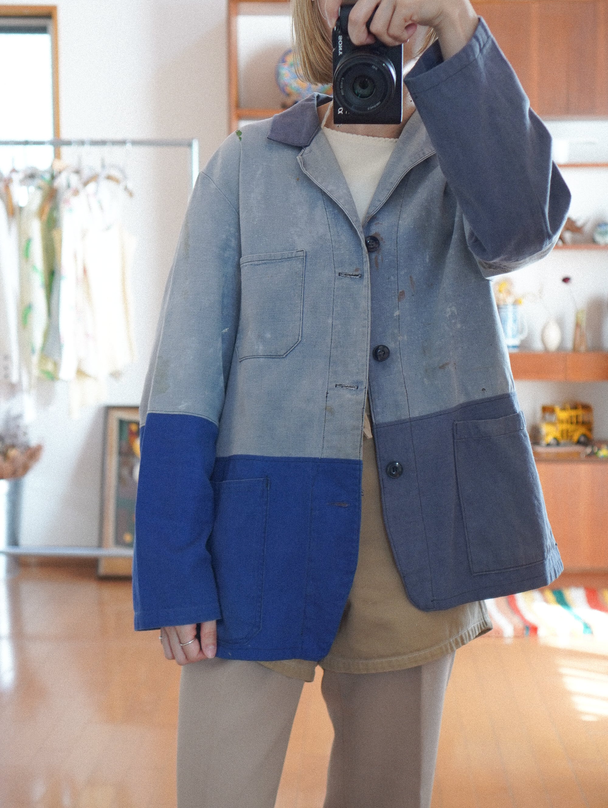 ダメージも含めてたのしんでくれる方にお届けできたらうれしいです。/vintage work jacket faded blue gray patchwork