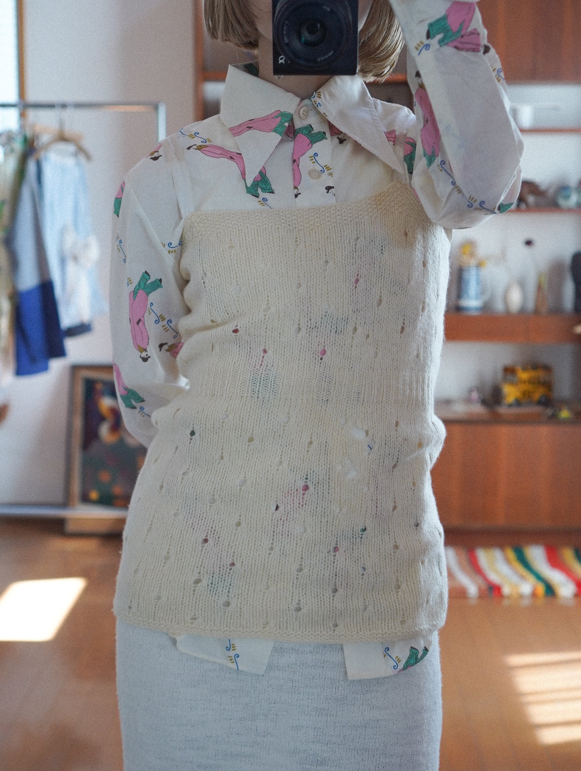 vintage printed shirt people motif deadstock/cream