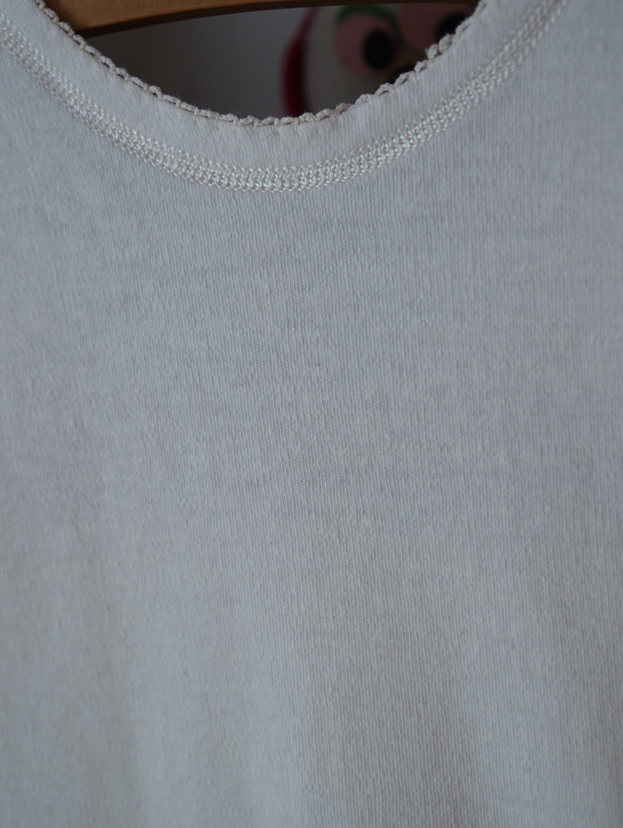 ネックやアームホールにあしらわれた、ピコレースとさりげないフロントのリボンがチャームポイント。vintageならではの、ほんのり生成りを感じる、やわらかなクリームカラーも最高にgoodです!
