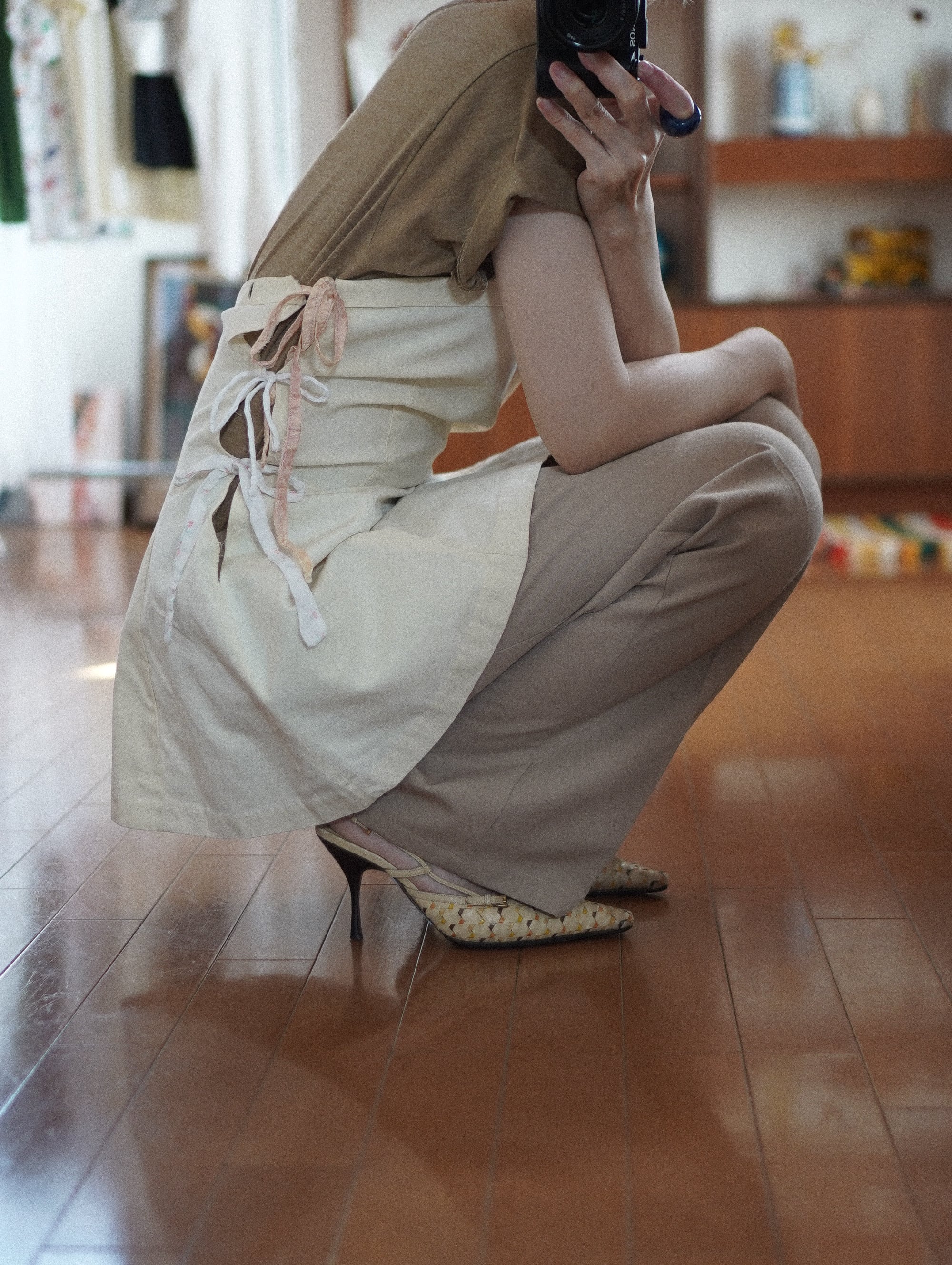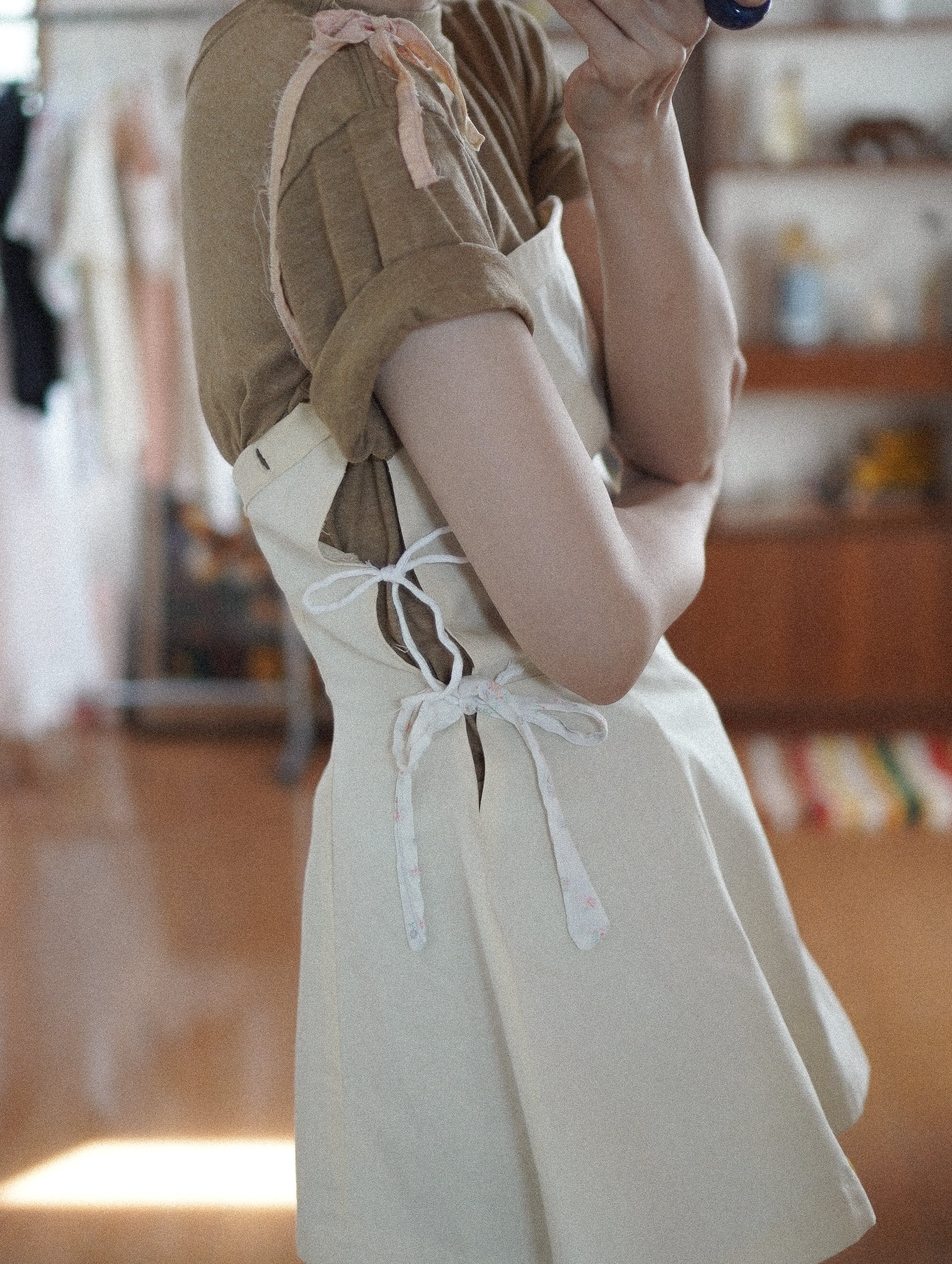素材の違う紐をあえて合わせているところがチャームポイント。古い布紐を使って雰囲気を崩さないようにしています。
