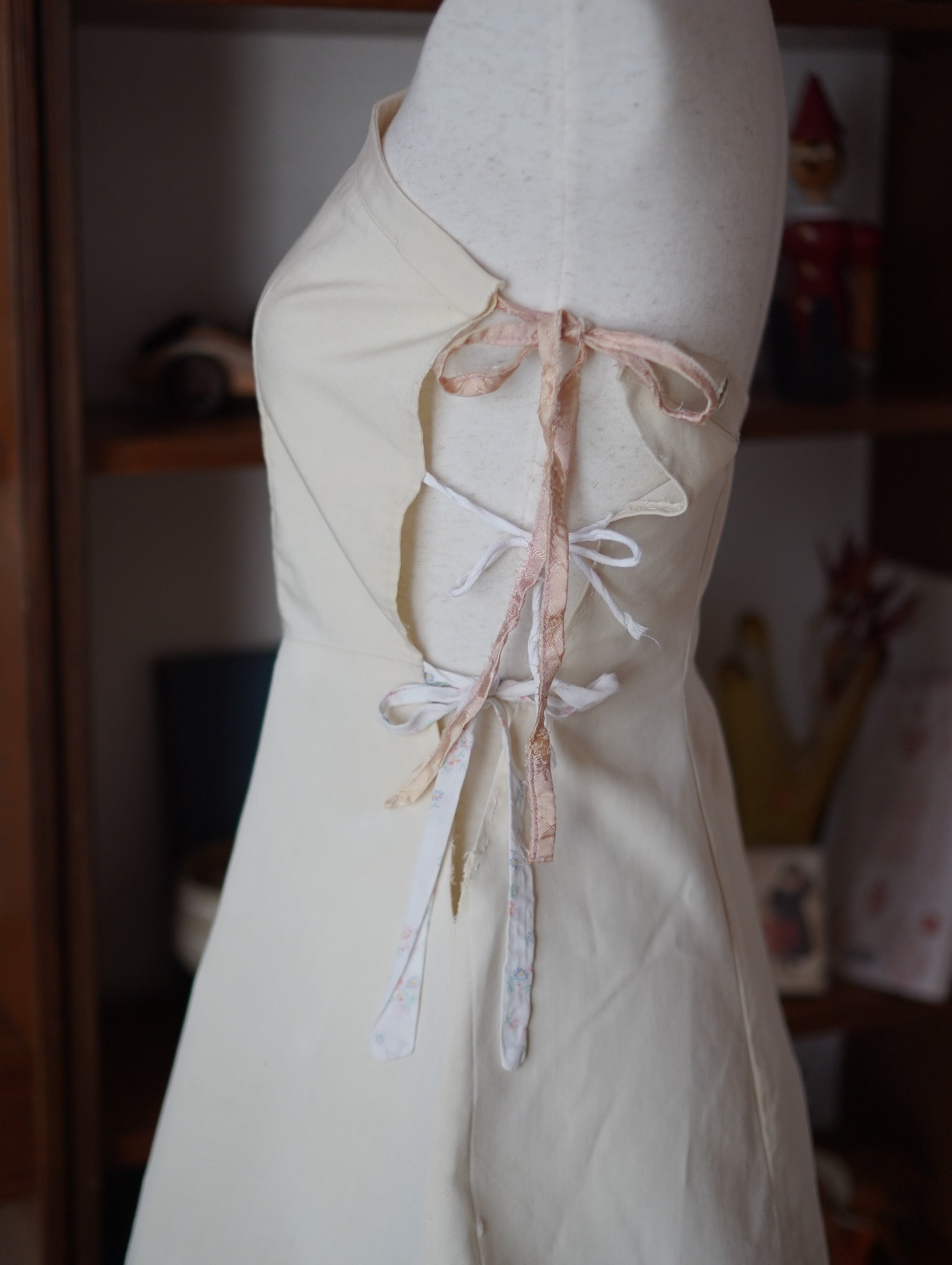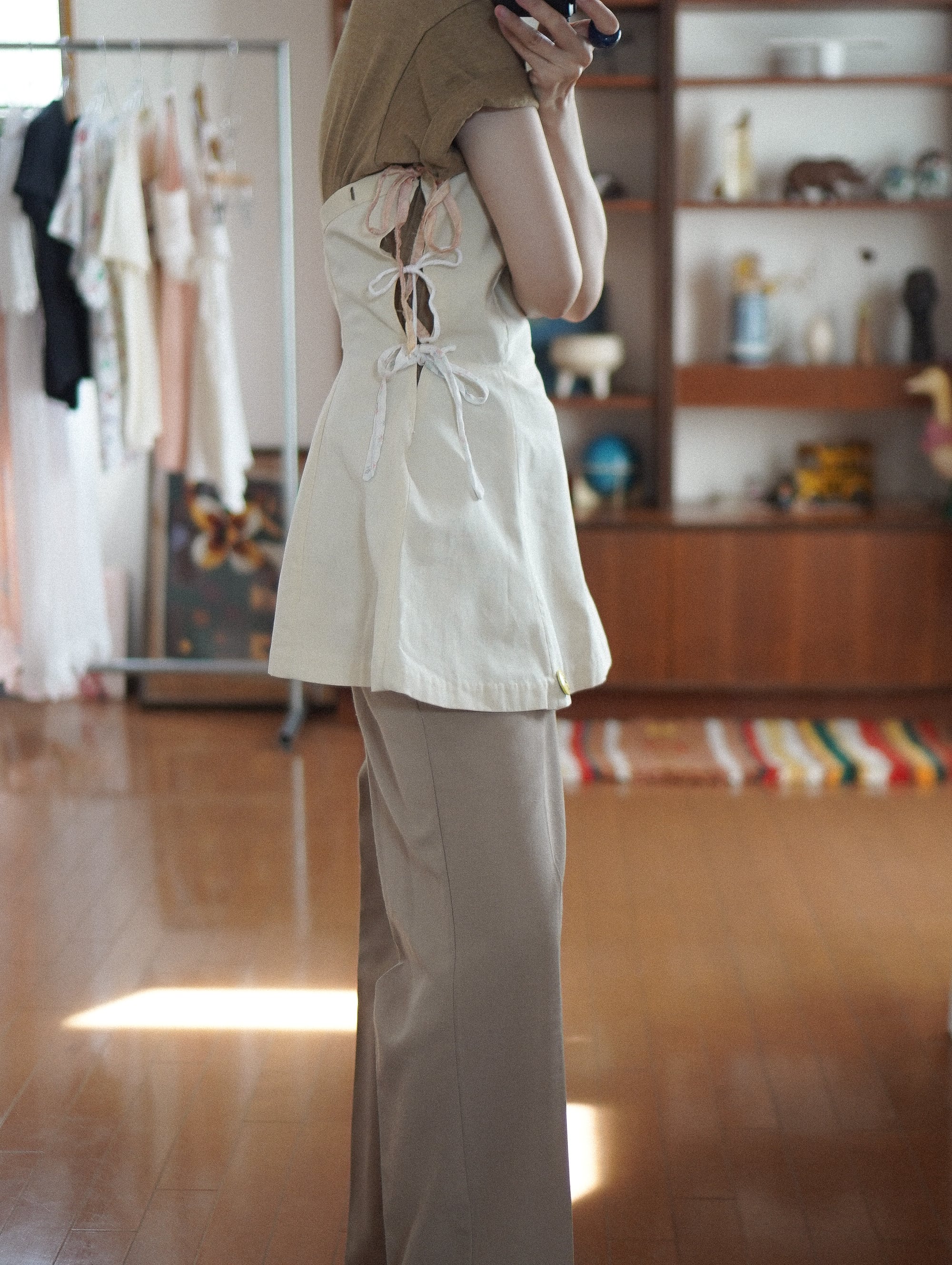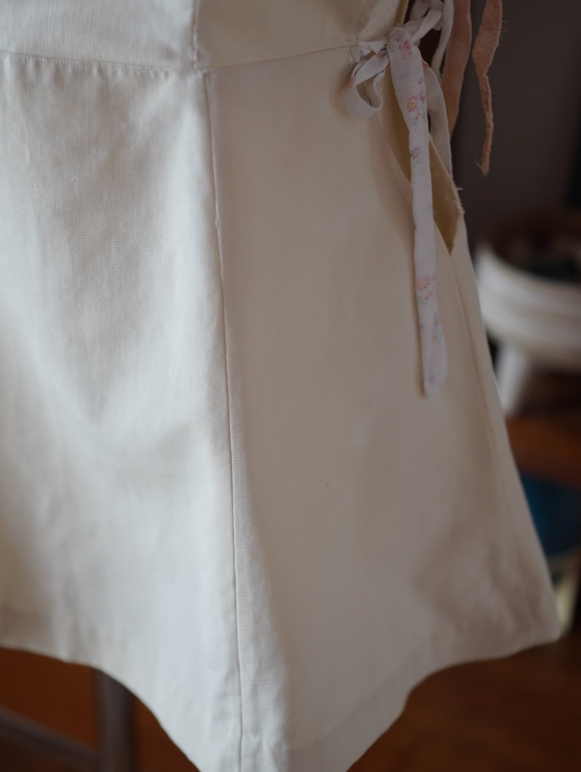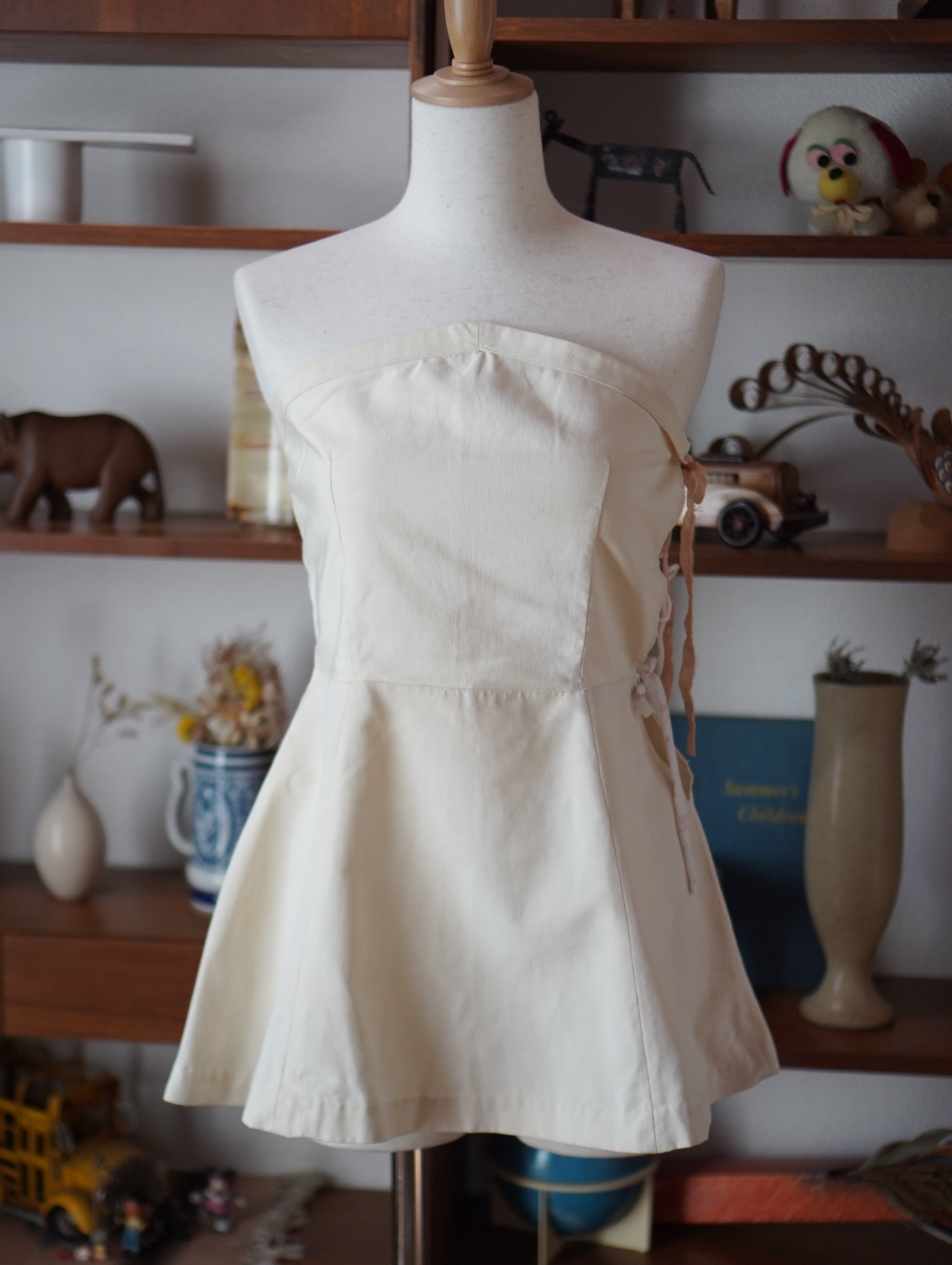 vintageのテニスウェアをベースに、サイドに古い紐をプラスしたリメイク。