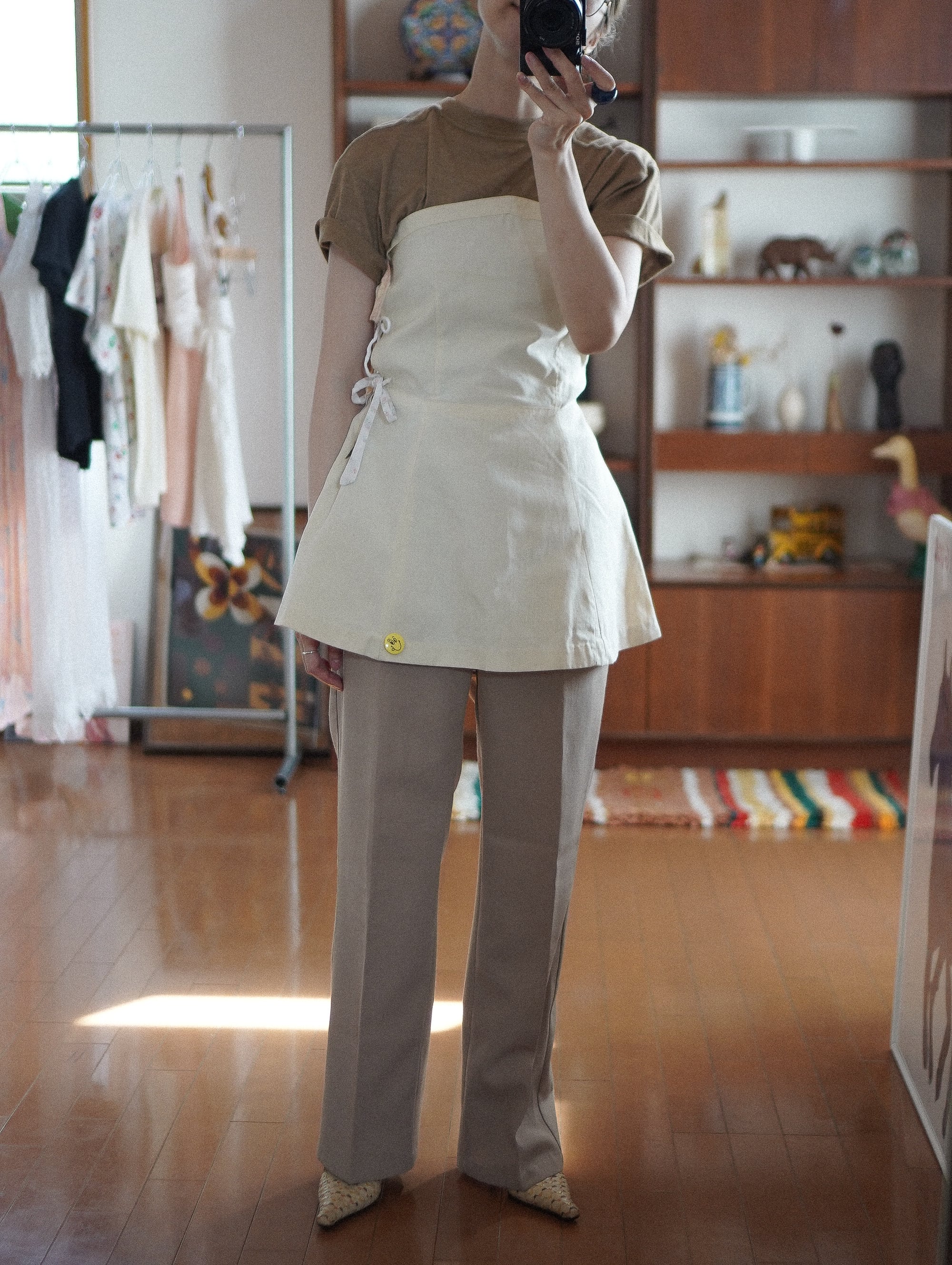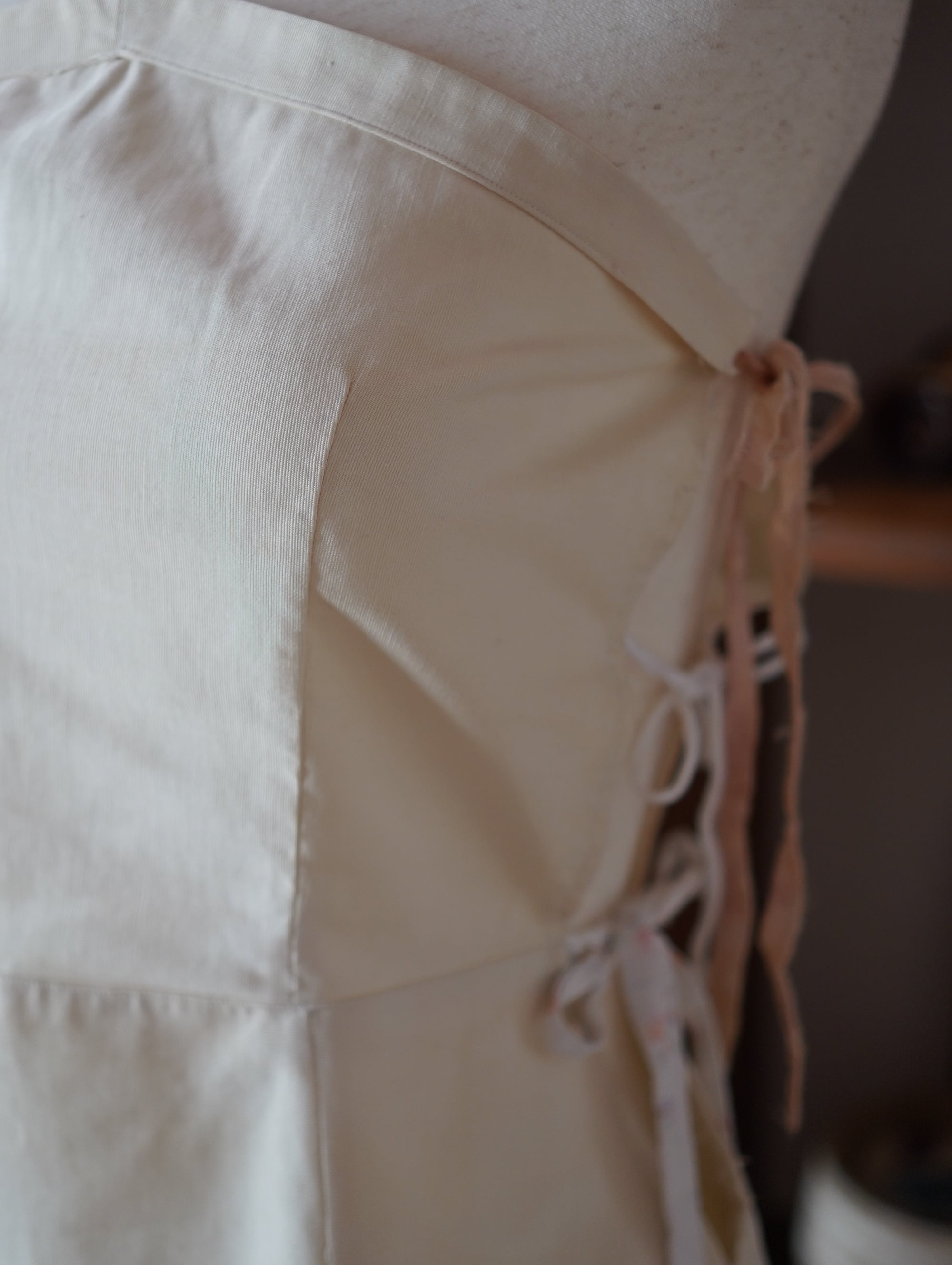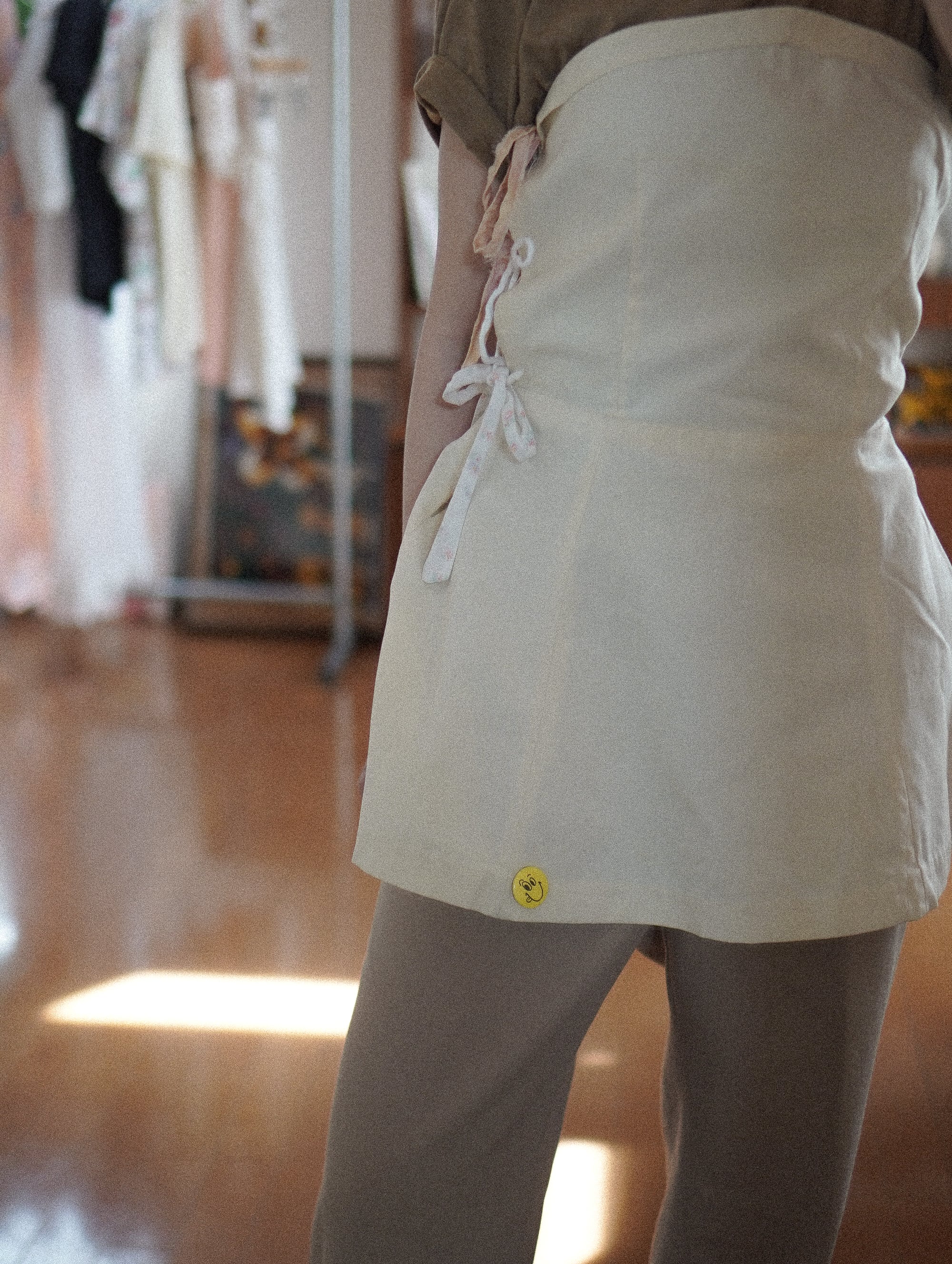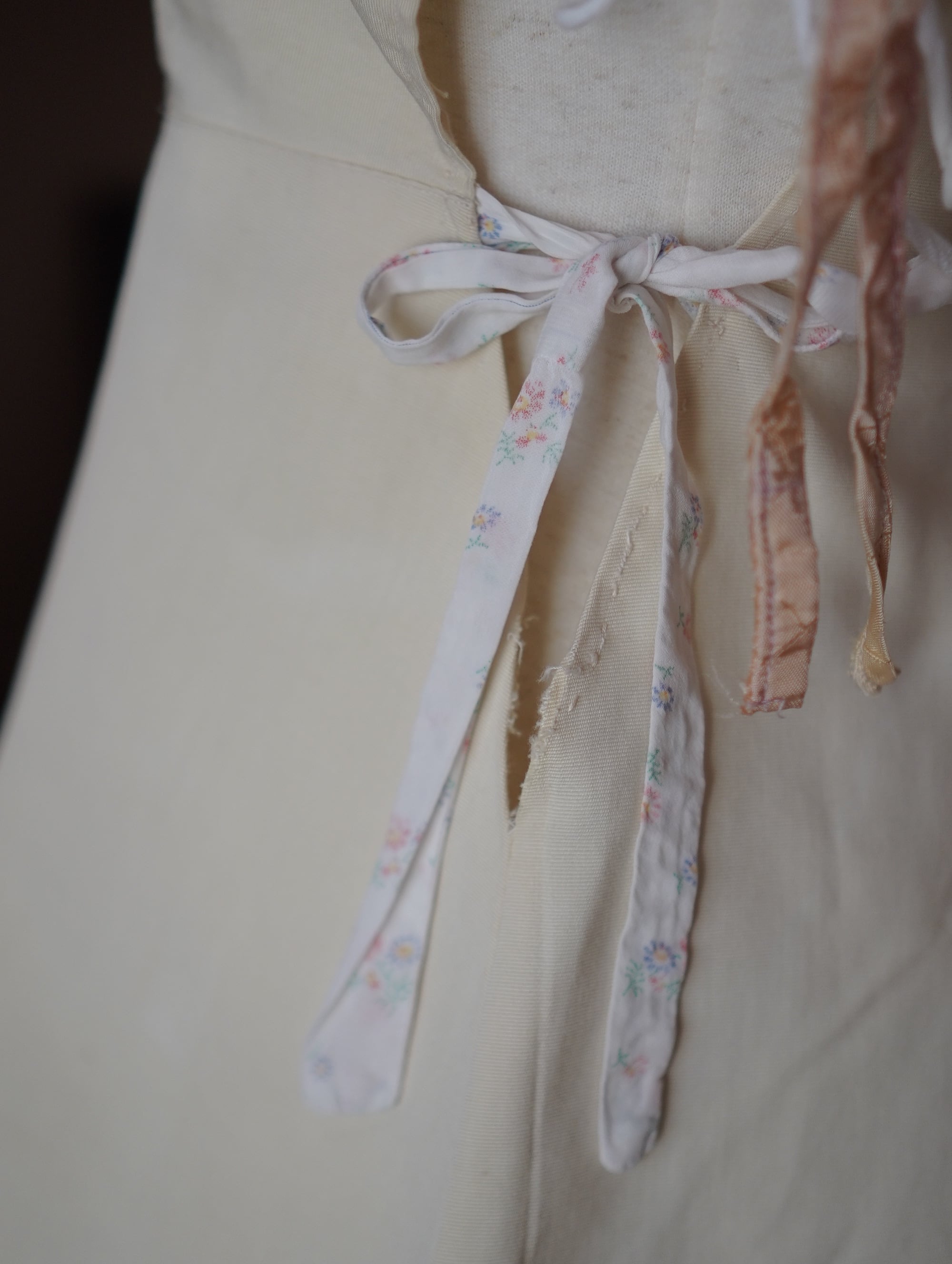 vintageのテニスウェアをベースに、サイドに古い紐をプラスしたリメイク。