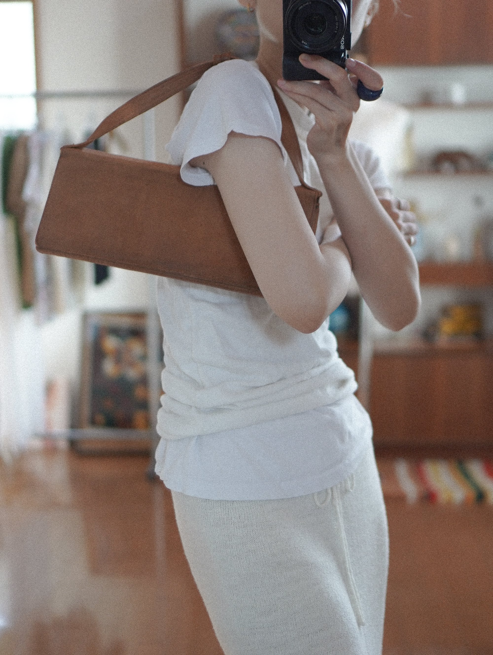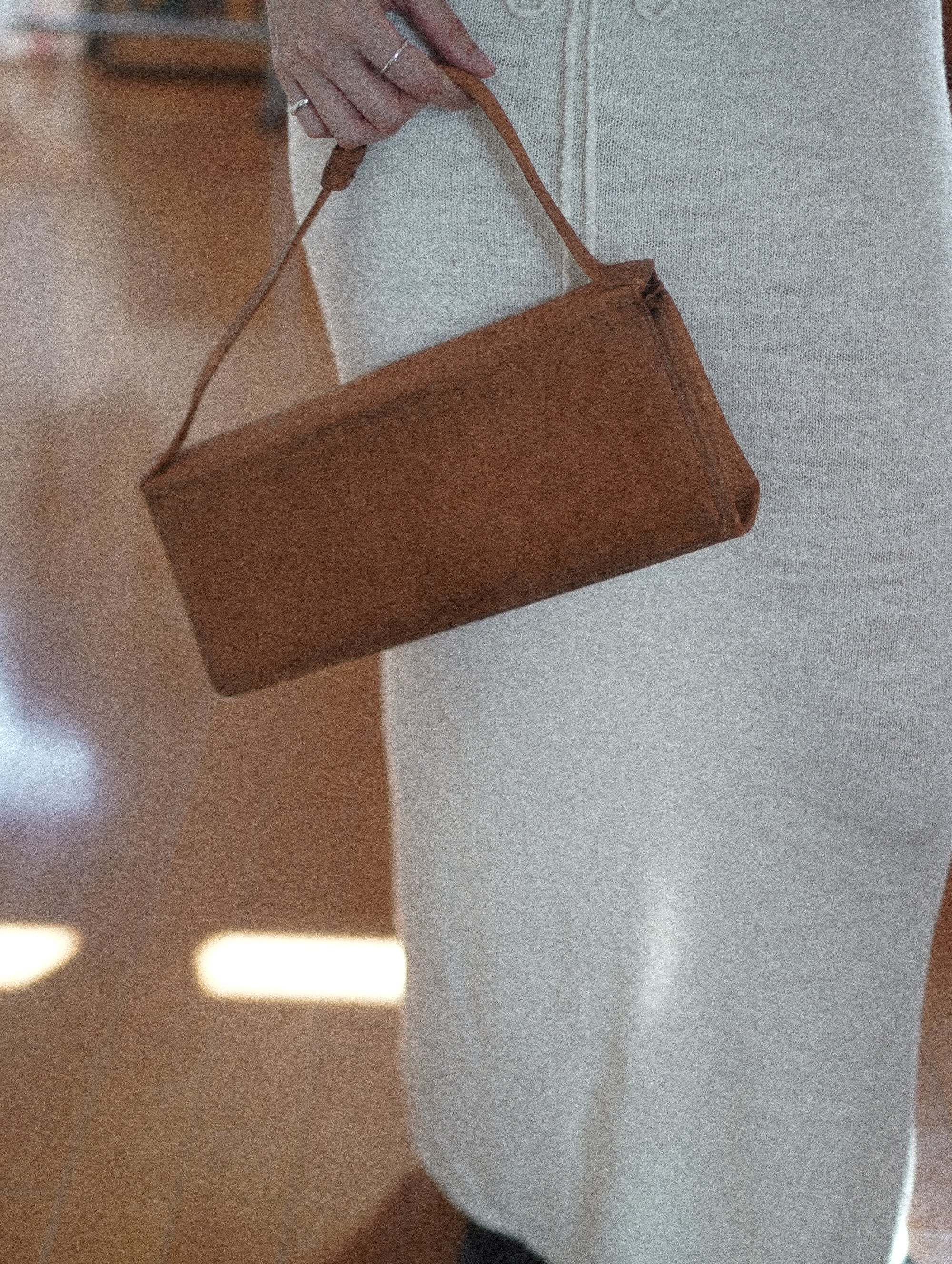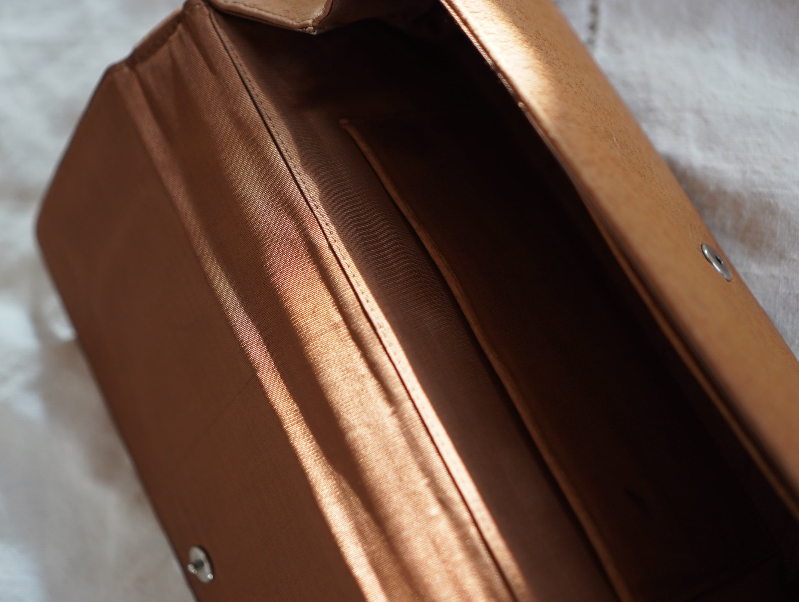横長のシルエットと、深みのあるマットなブラウンレザーがキュートな70's頃のヴィンテージバッグ。