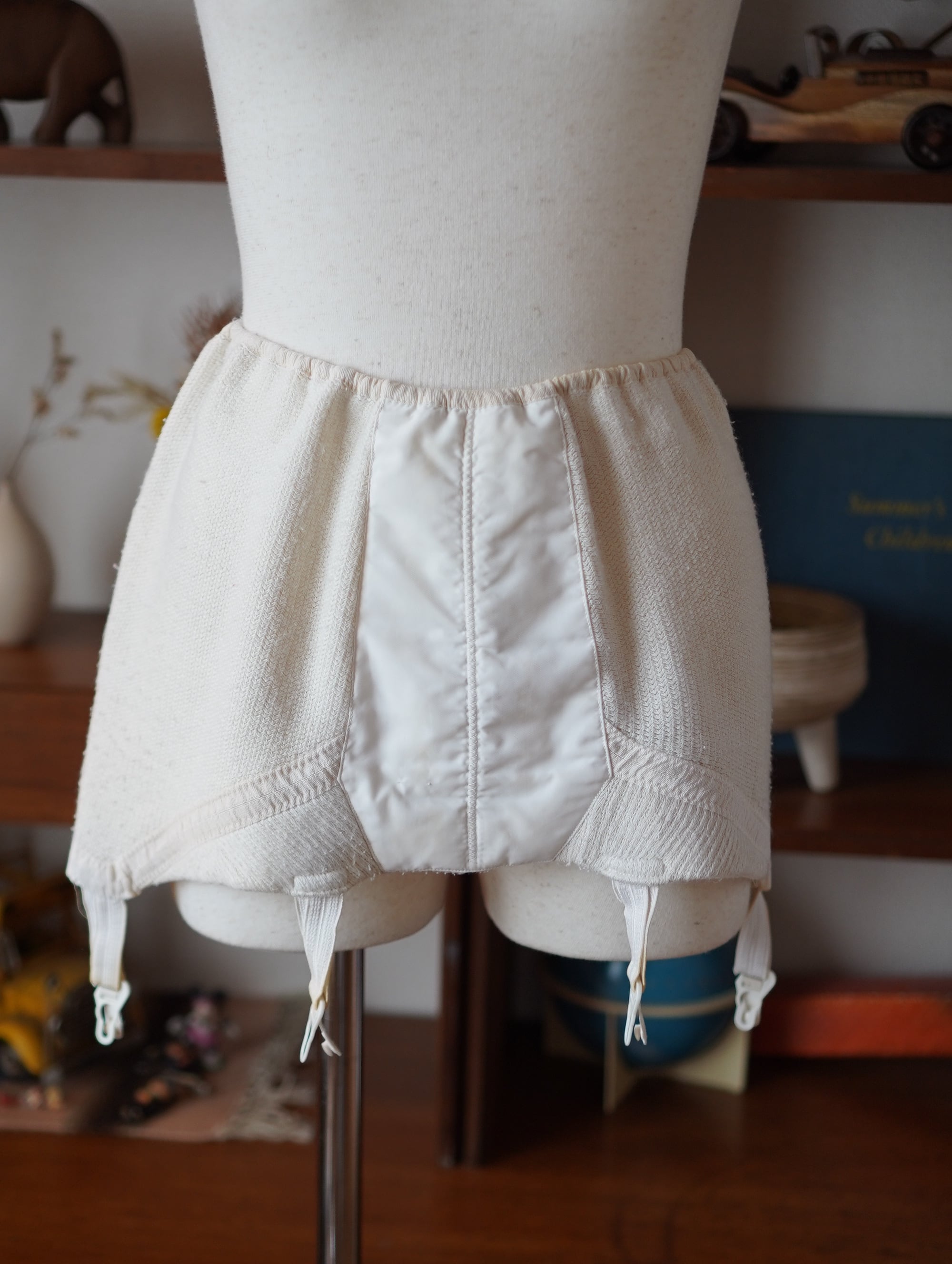 やわらかなニット素材と、ガーターのアンバランスな組み合わせがチャームポイントなヴィンテージガータースカート。