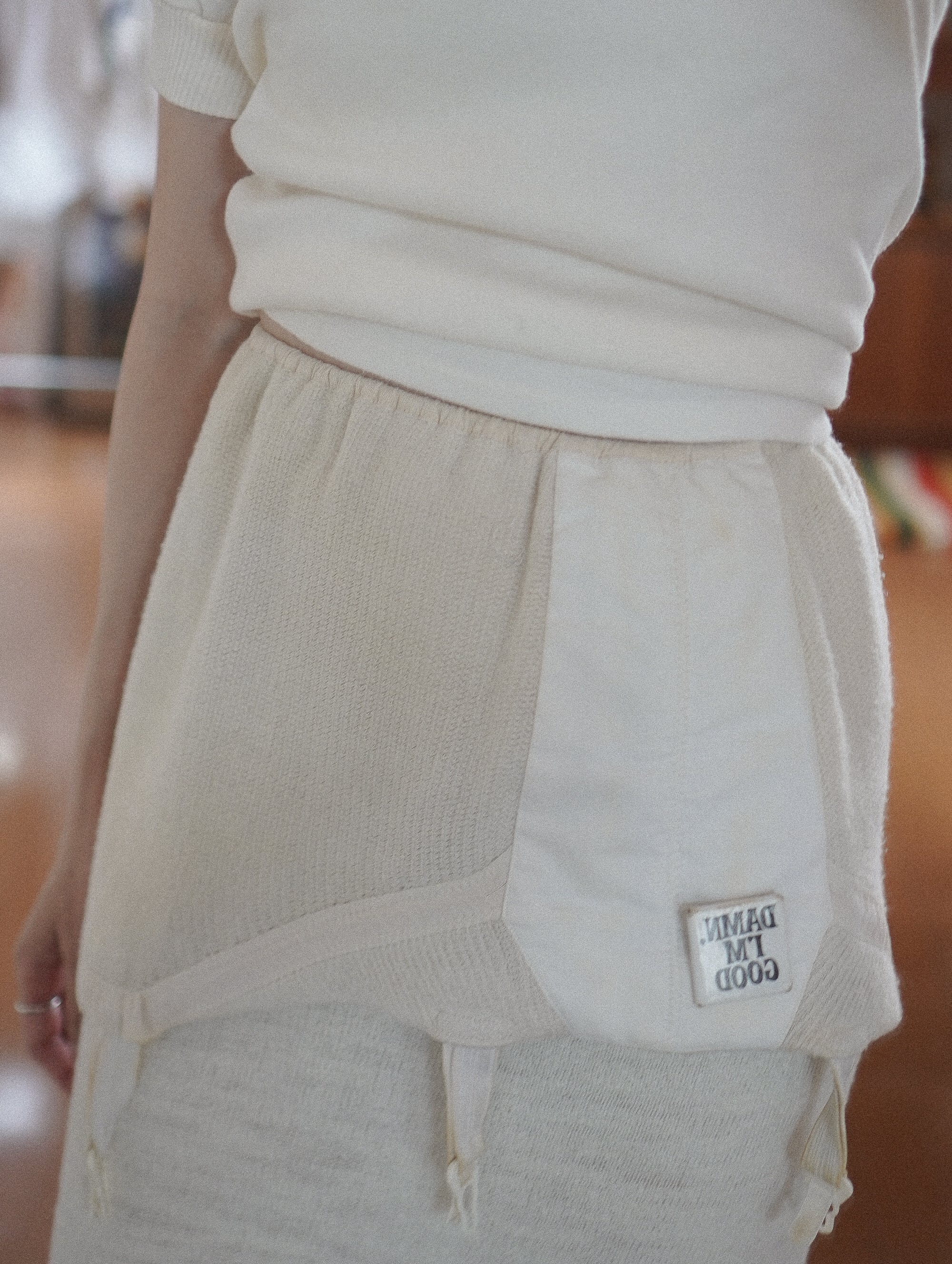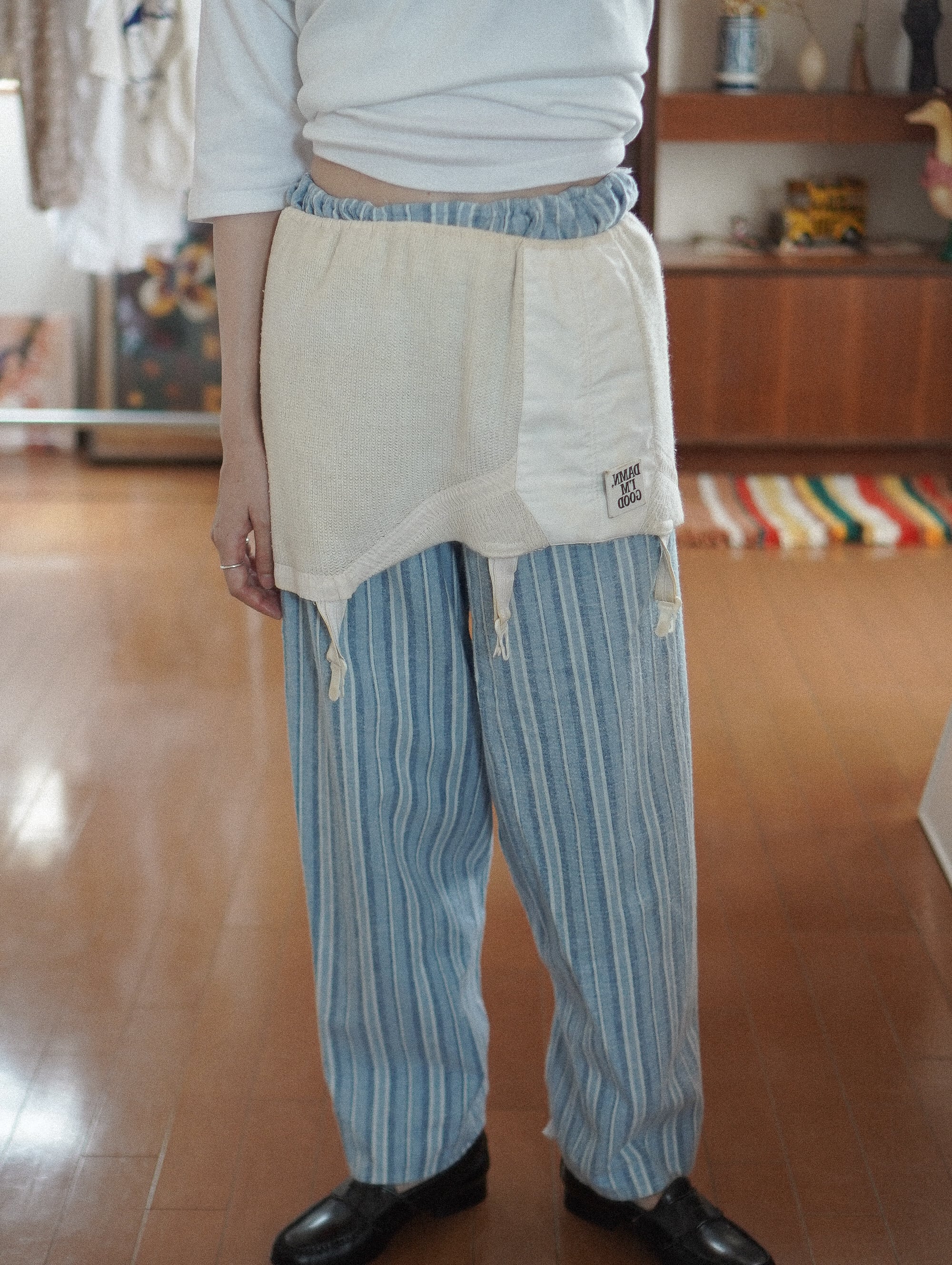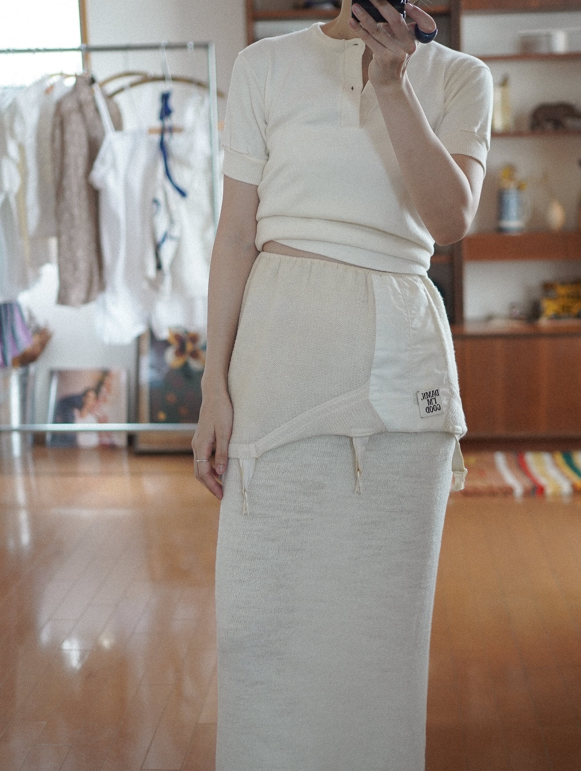 古いタグが残っているのもうれしいポイントで、ヴィンテージらしい空気感をしっかり感じられる一枚です。/ vintage knit garter skirt