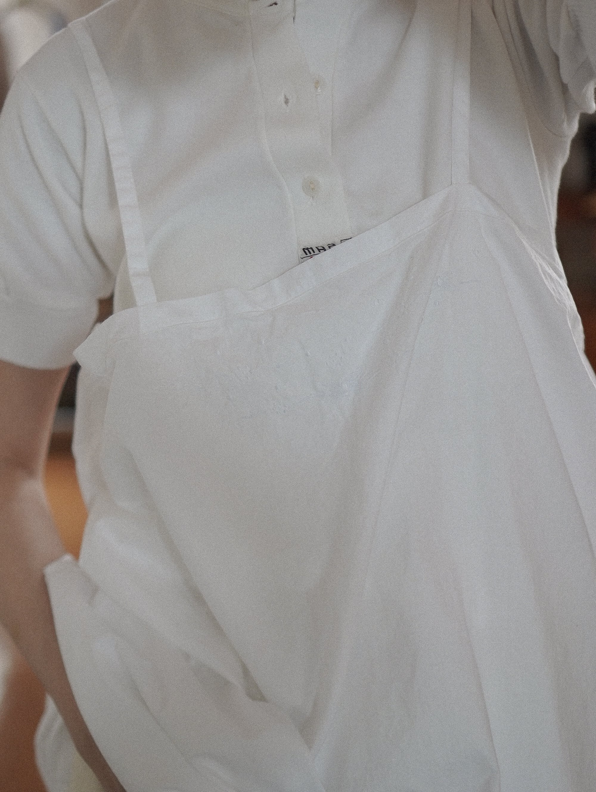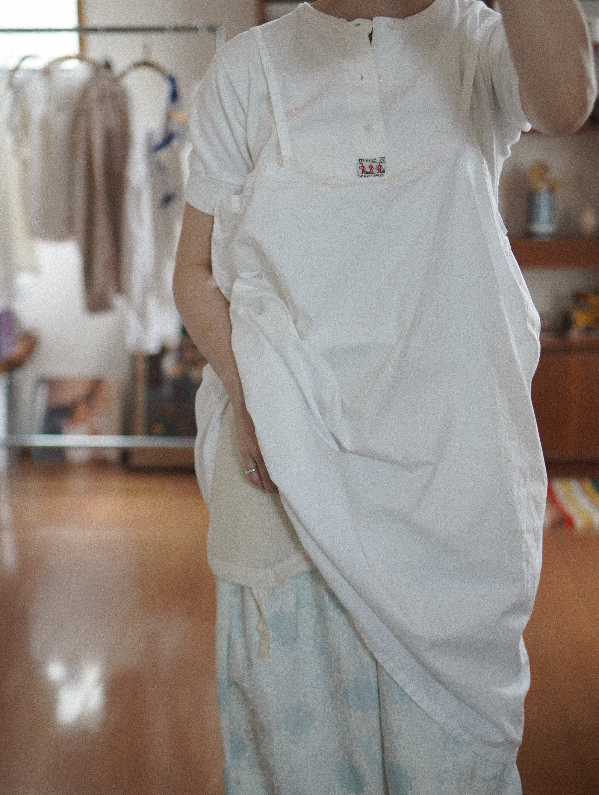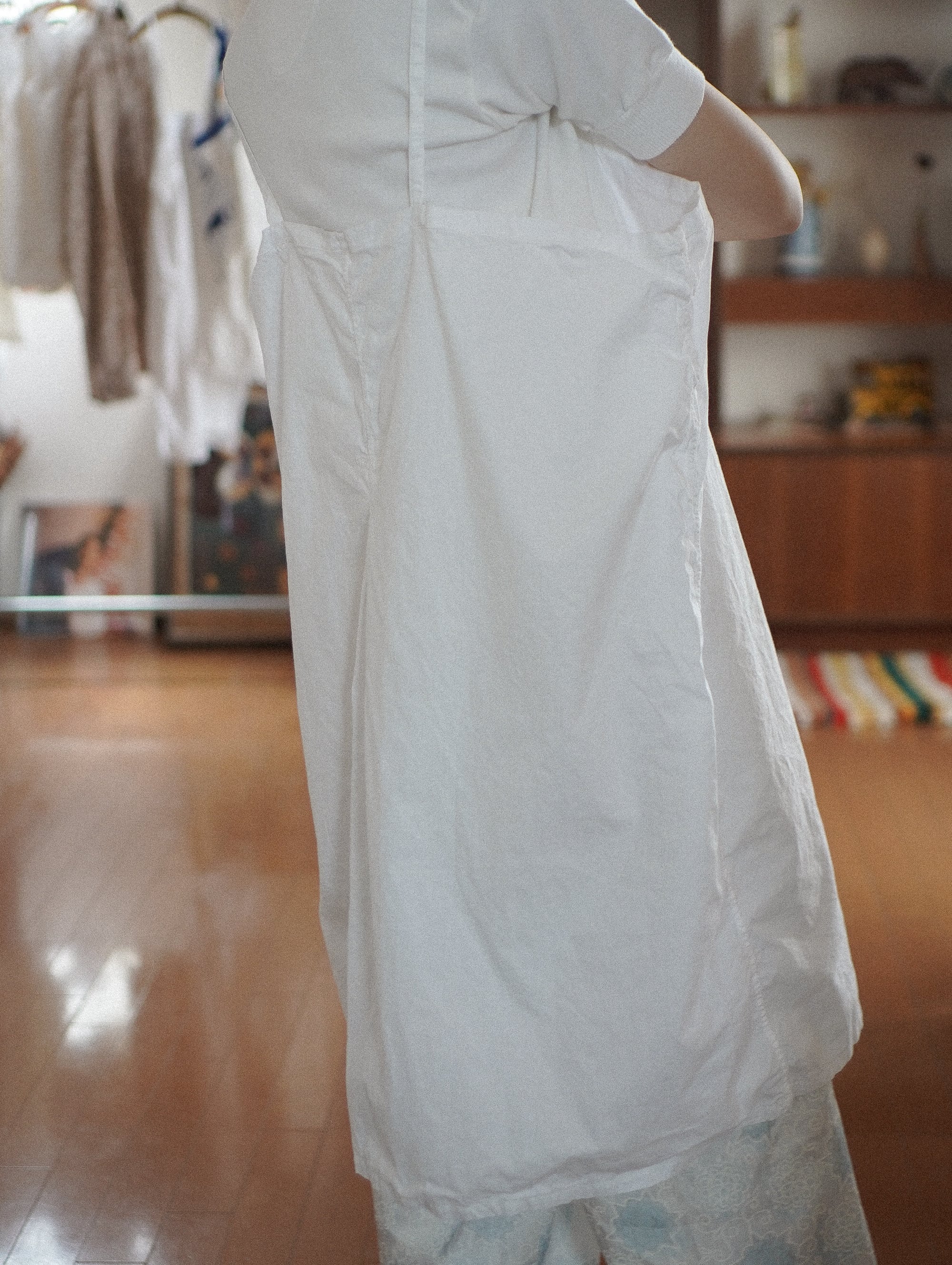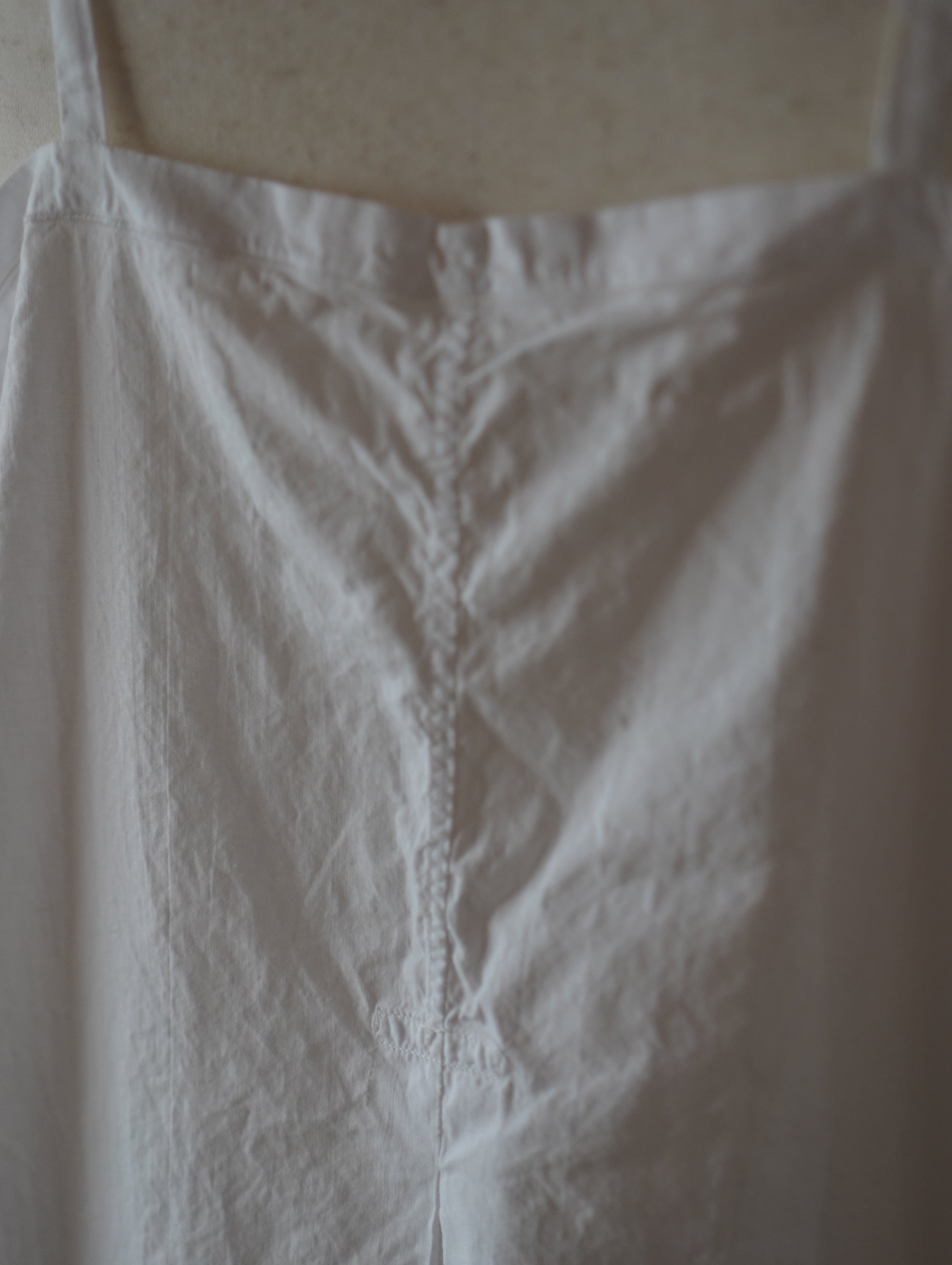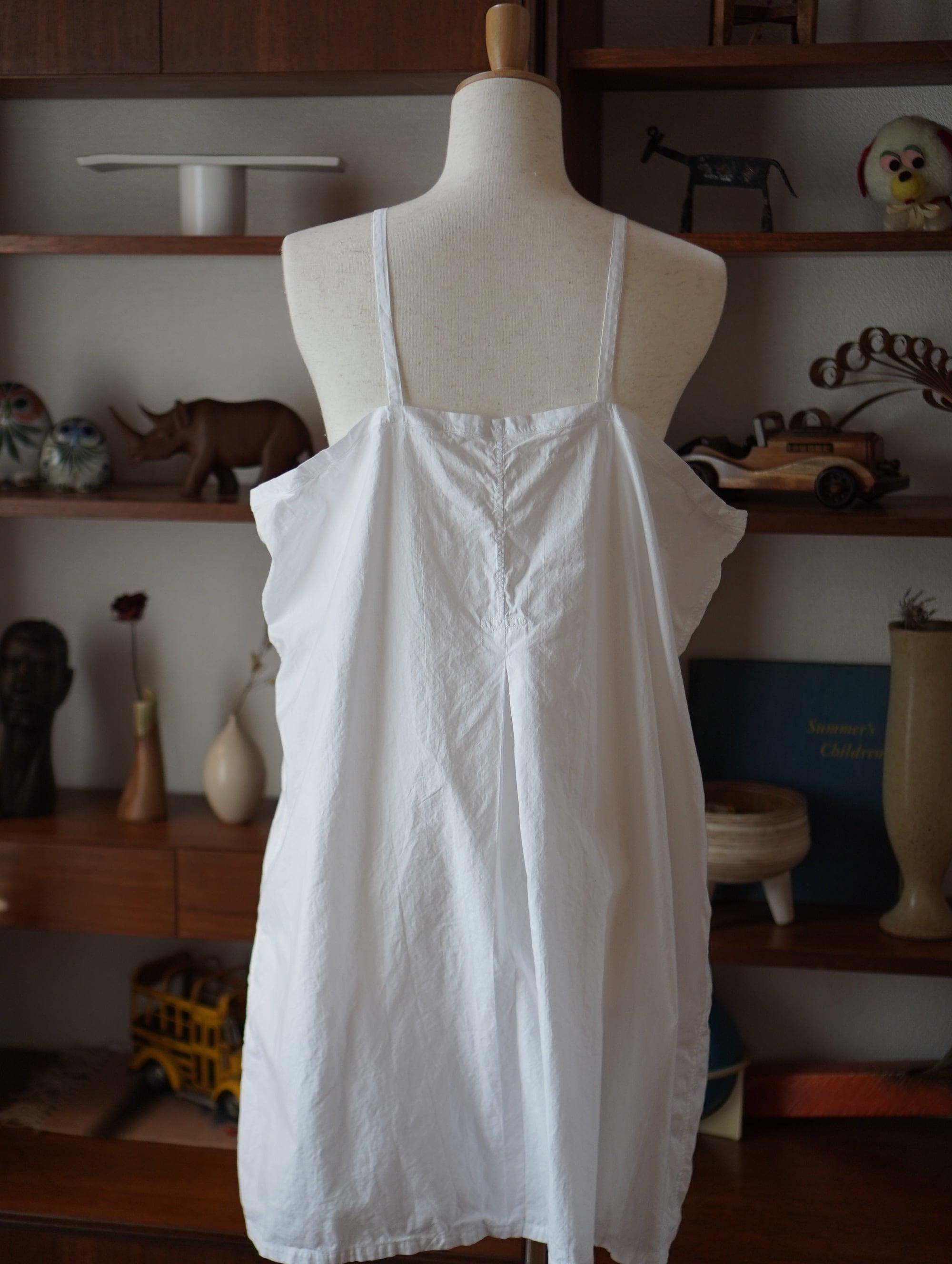 一枚でさらっと着るのはもちろん、デニムやパンツとのレイヤードもおすすめで、スタイリング次第で印象を変えて楽しめます。/ vintage cotton camisole dress