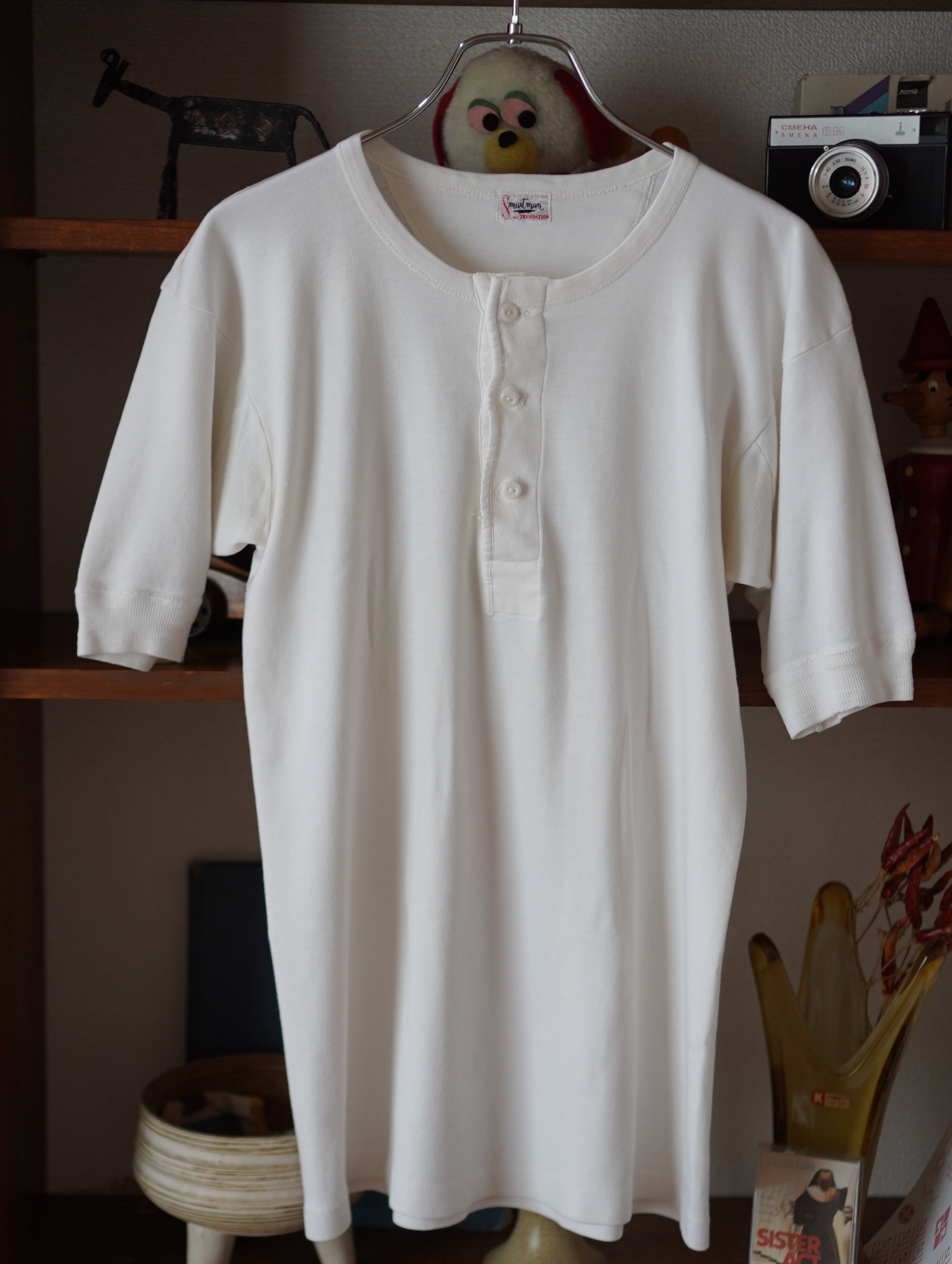 くたっとやわらかくなった生地感がgoodな、ユーロヴィンテージのヘンリーネックtee。