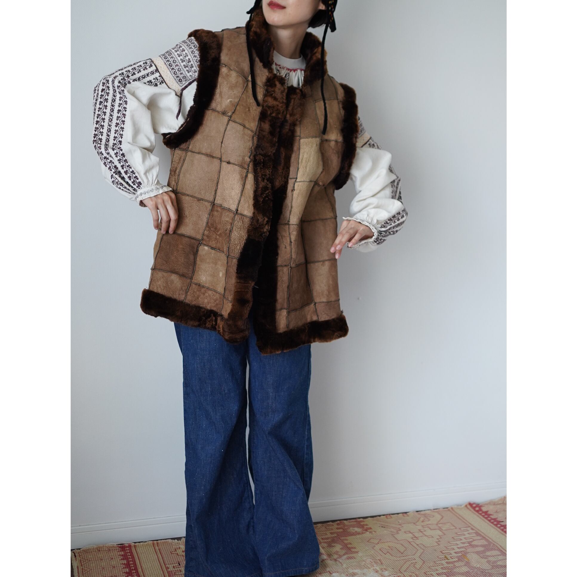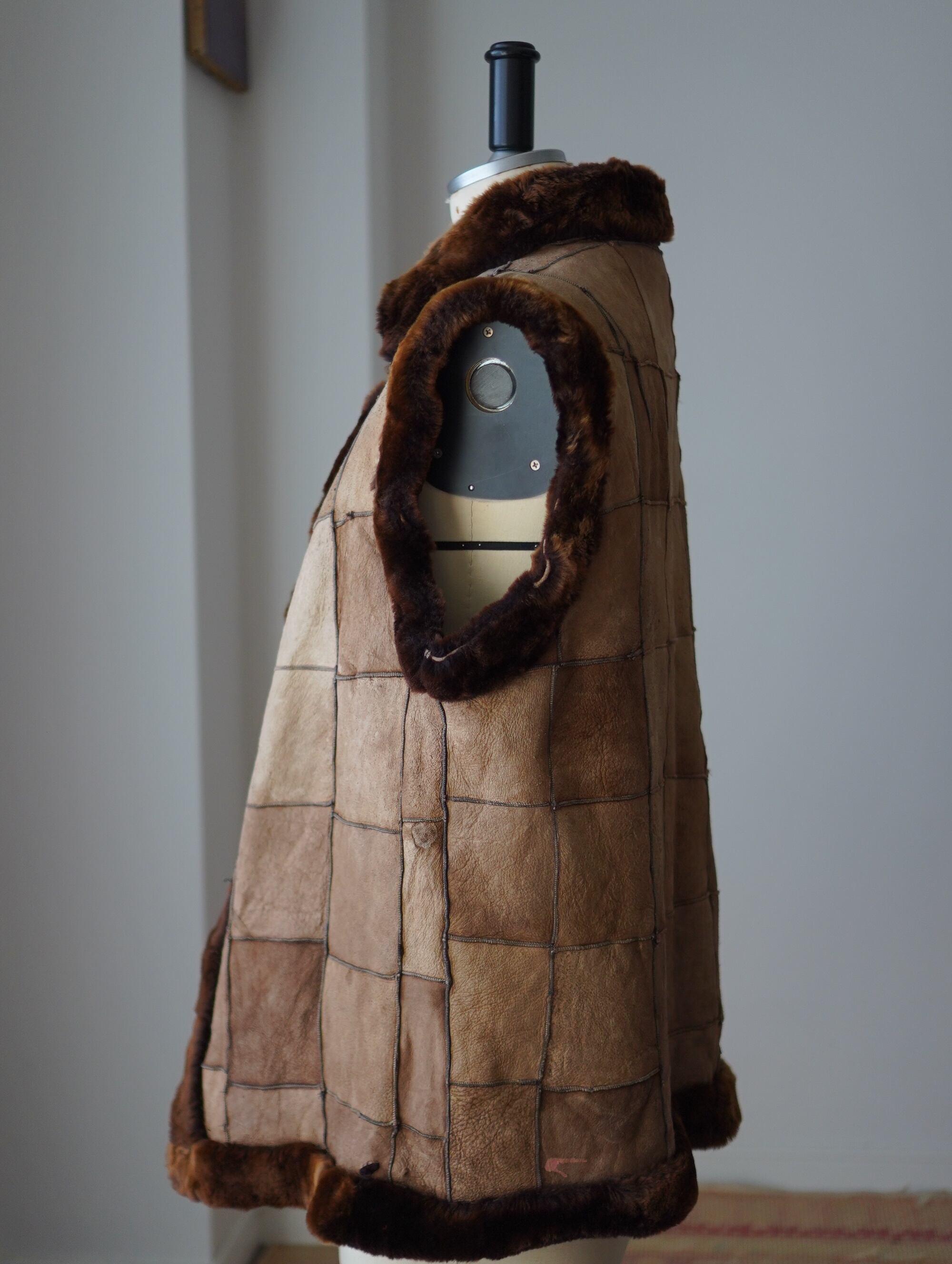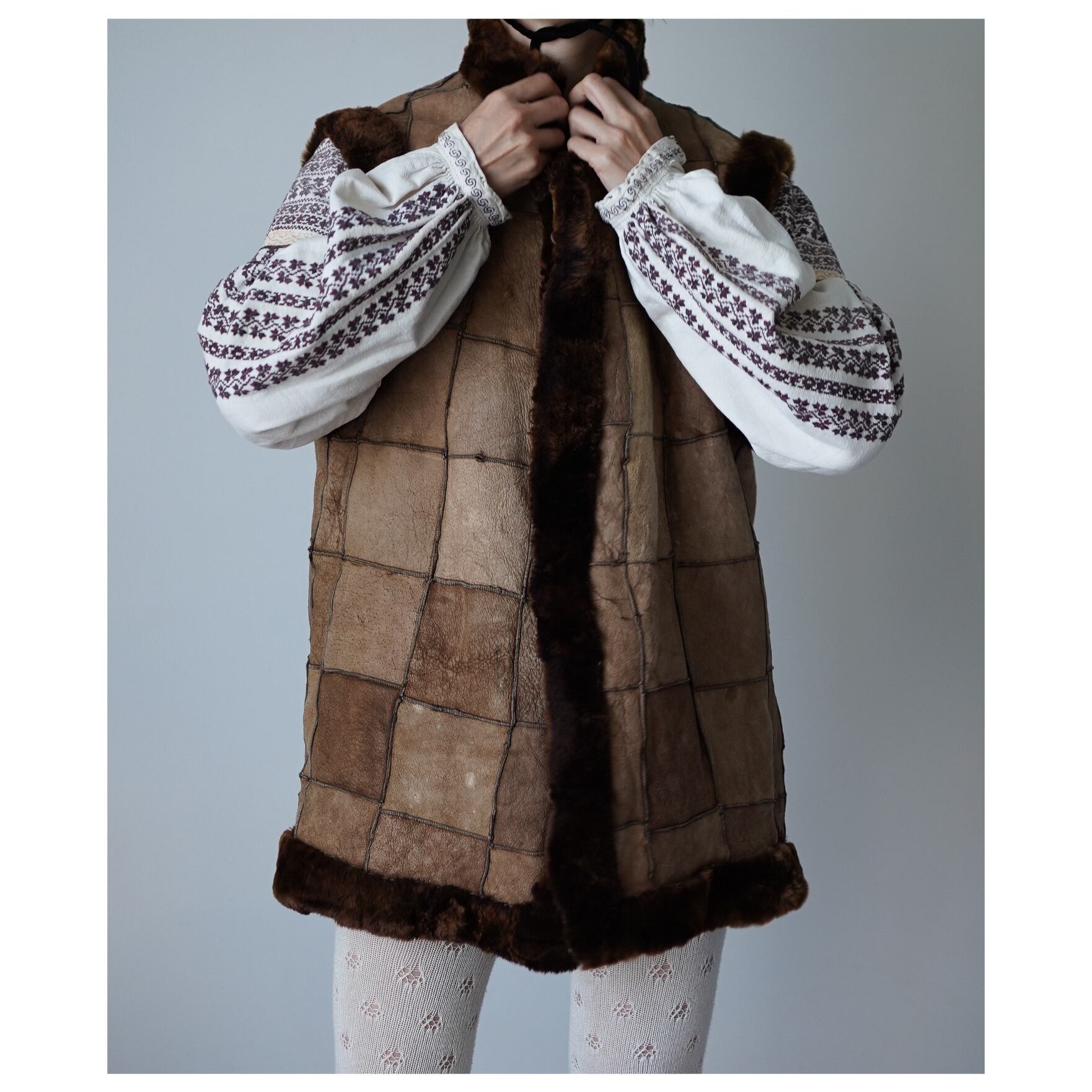 ハンガリーで出会った、シープスキンのムートンパッチワークベスト。ルーマニア製で、現地の方の手縫いで作られているそう。リバーシブルで着用いただけて、嬉しいことにアームホールが大きいのでジャケットの上からでも羽織れます。ぬくぬくでとにかく暖かいです。重量感も少ないのでストレスフリーです。