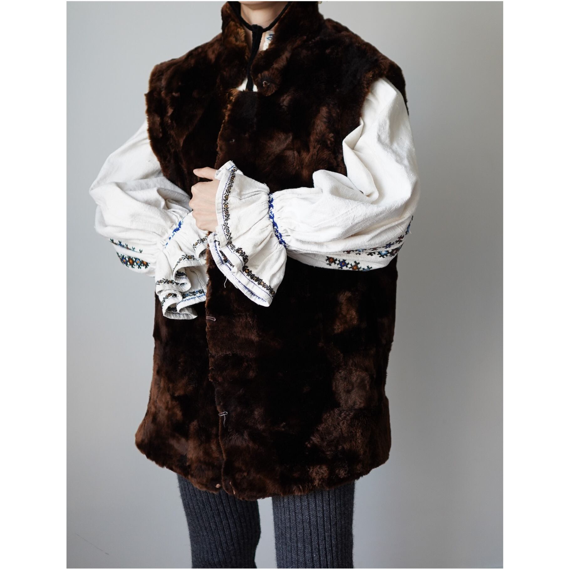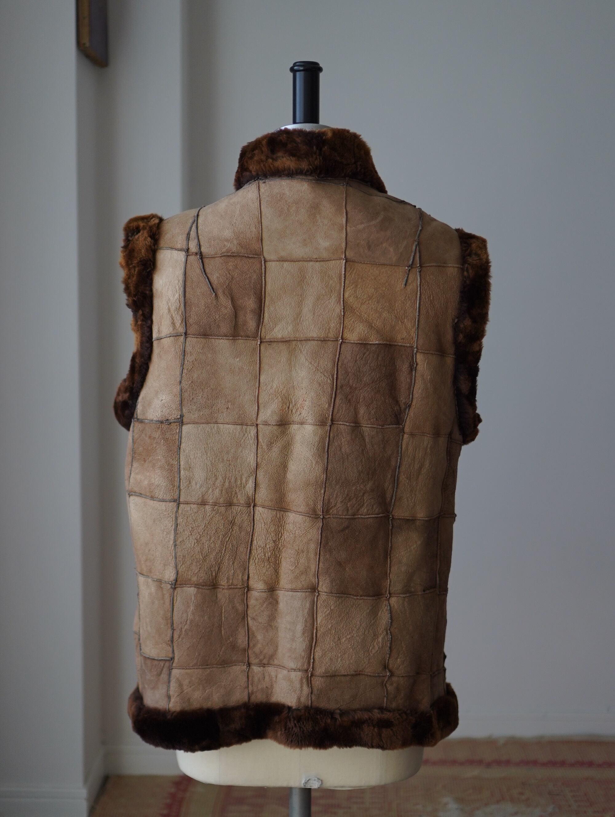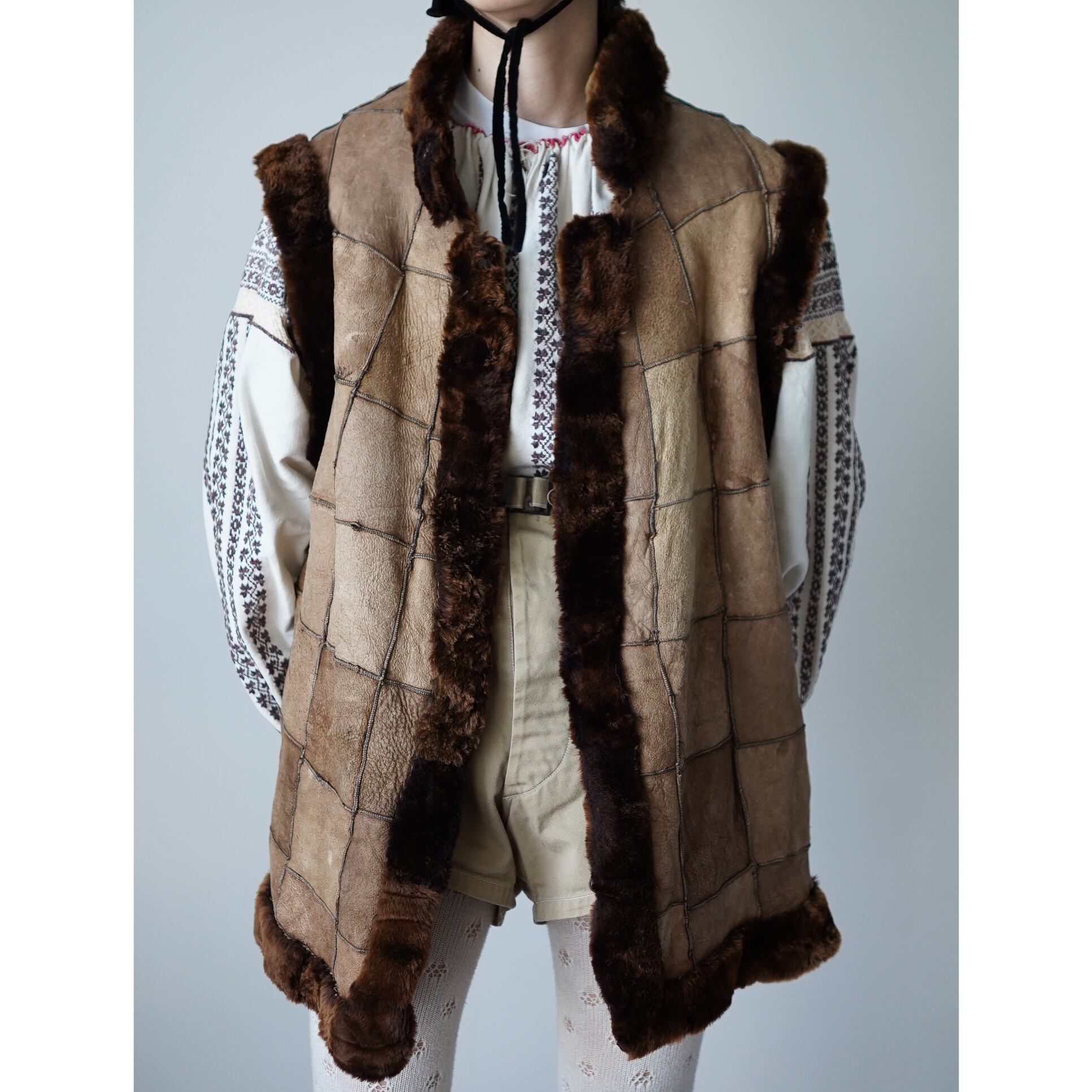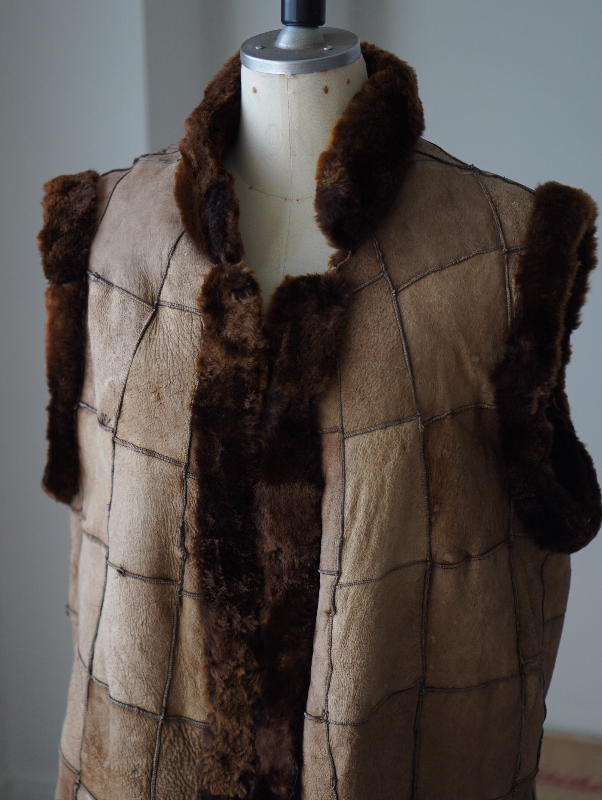 ハンガリーで出会った、シープスキンのムートンパッチワークベスト。ルーマニア製で、現地の方の手縫いで作られているそう。リバーシブルで着用いただけて、嬉しいことにアームホールが大きいのでジャケットの上からでも羽織れます。ぬくぬくでとにかく暖かいです。重量感も少ないのでストレスフリーです。