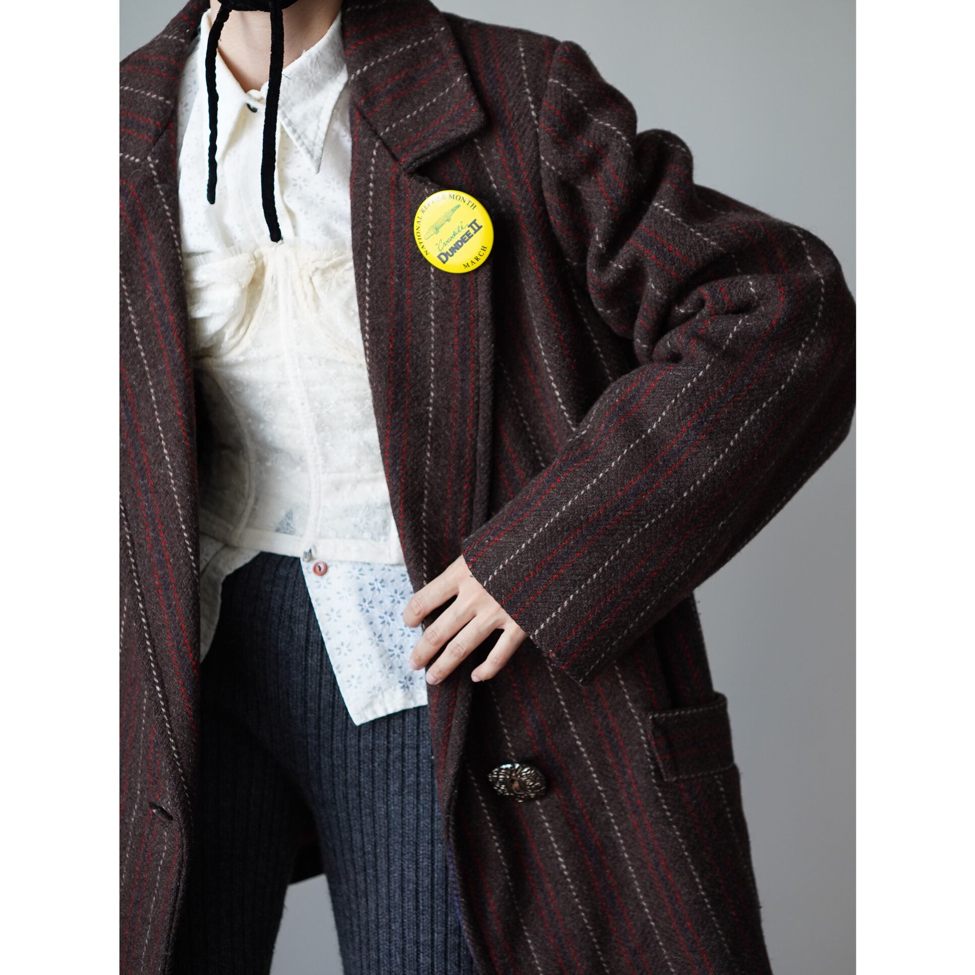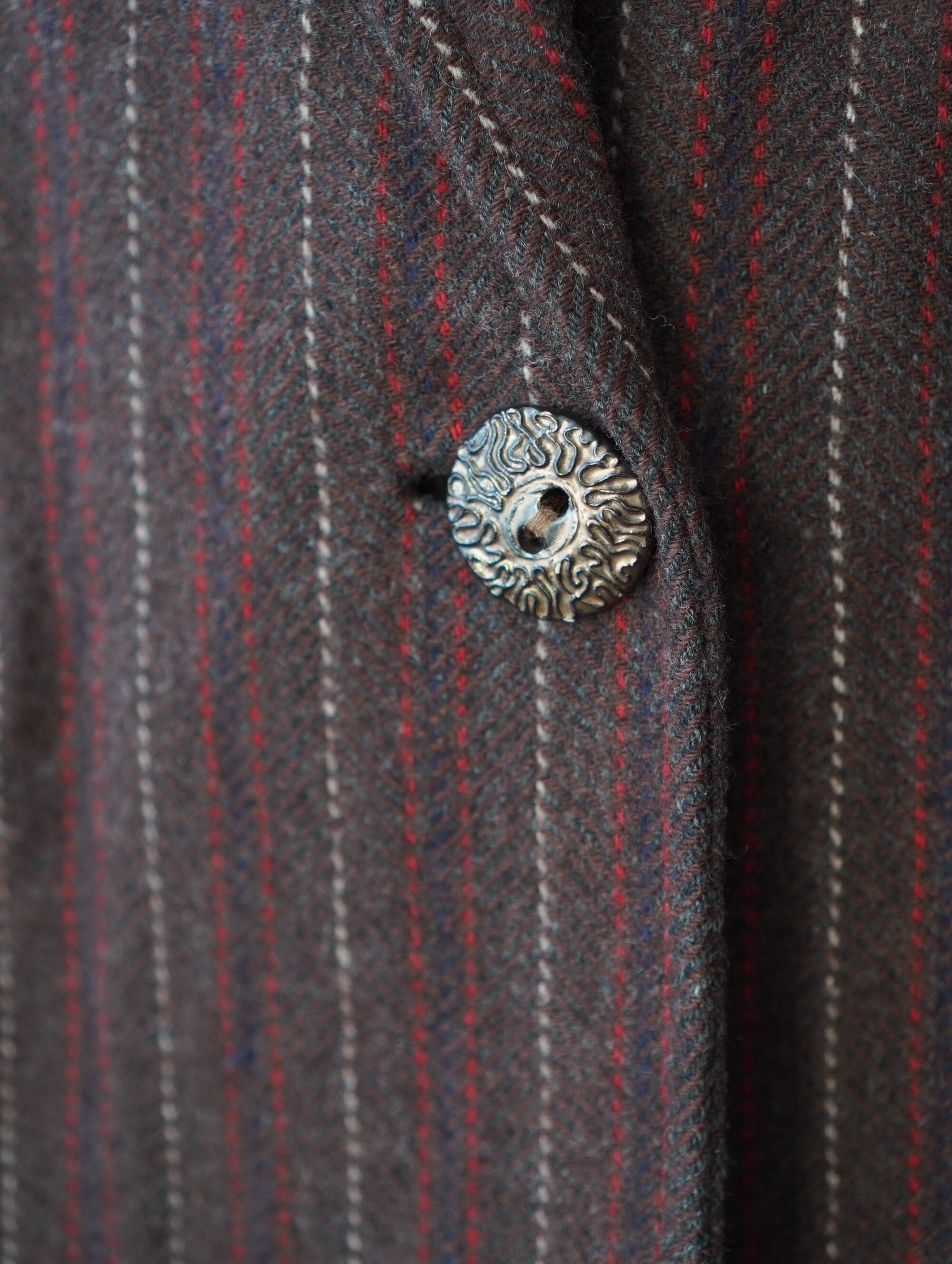 写真で伝わると良いのですが、肉厚で防寒性が高く、ヴィンテージならではの絶妙なブラウンカラーがスタイリングを華やげてくれます。おおきなボタンもしっかりと古いままなことが嬉しいポイント。