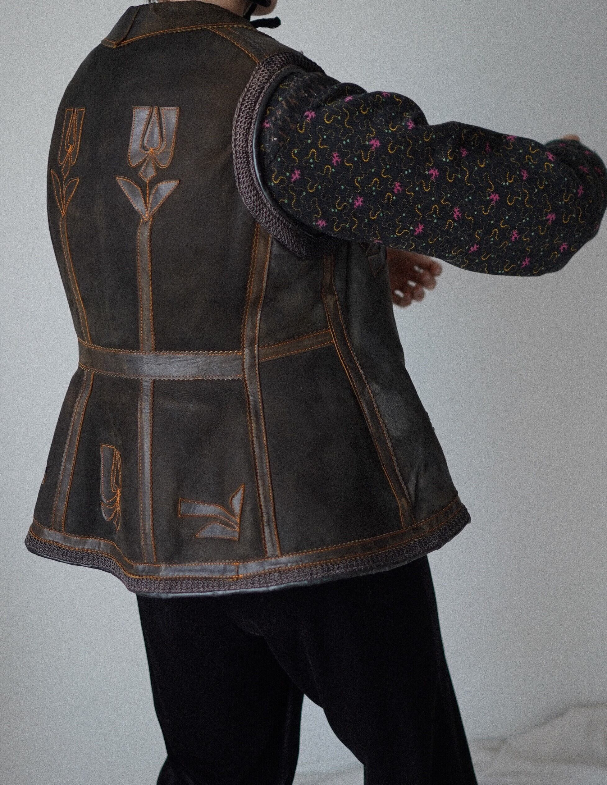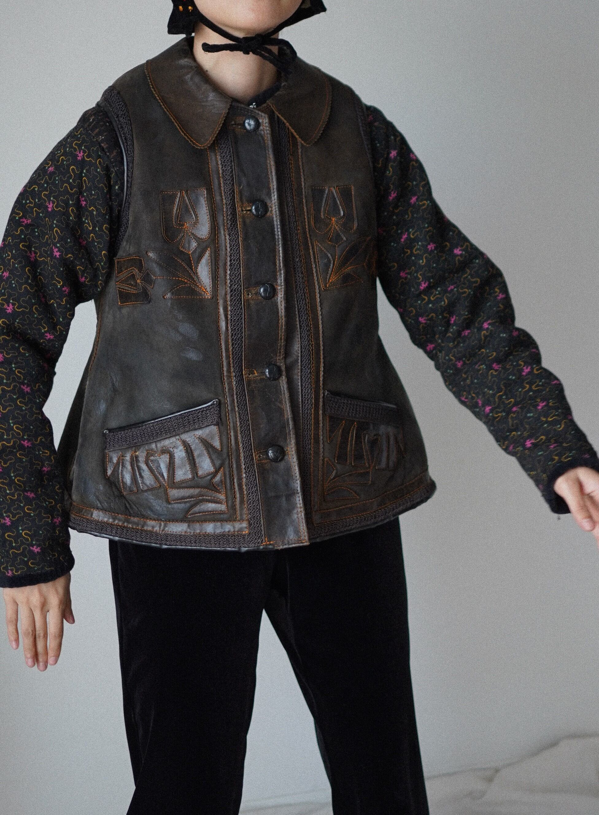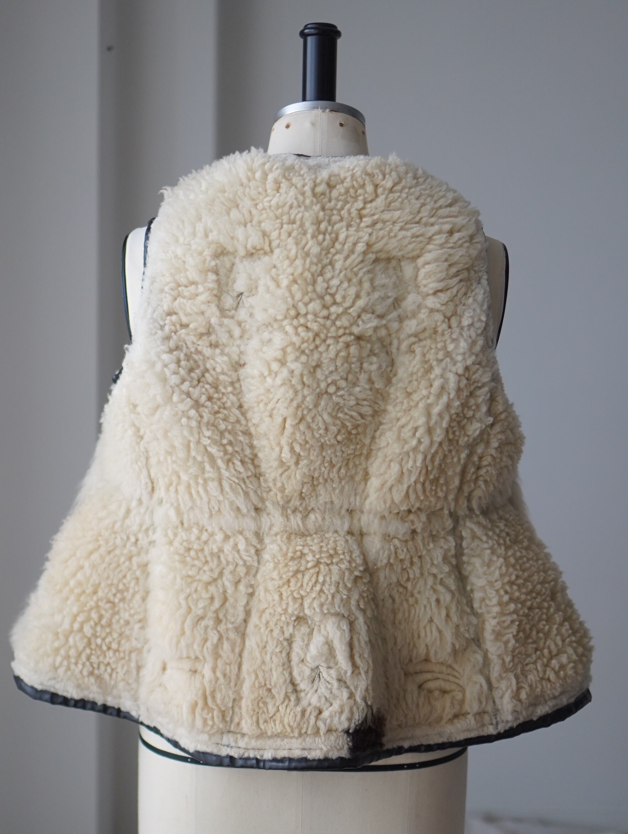 買い付け場所は、ルーマニアの山奥で開催される特別なマーケット。笑顔が素敵なご夫婦からお譲りいただきました、ムートンベストです。検索しても出てこない程、貴重なアイテム。表側はシープスキン、裏側は全体にシープファー。言わずもがな最強にあたたかい。ウエストをマークし、裾にかけてふんわりと広がるシルエットが上品です。くたくたに使い込まれているので、全体的に渋さが増しているgood condition。