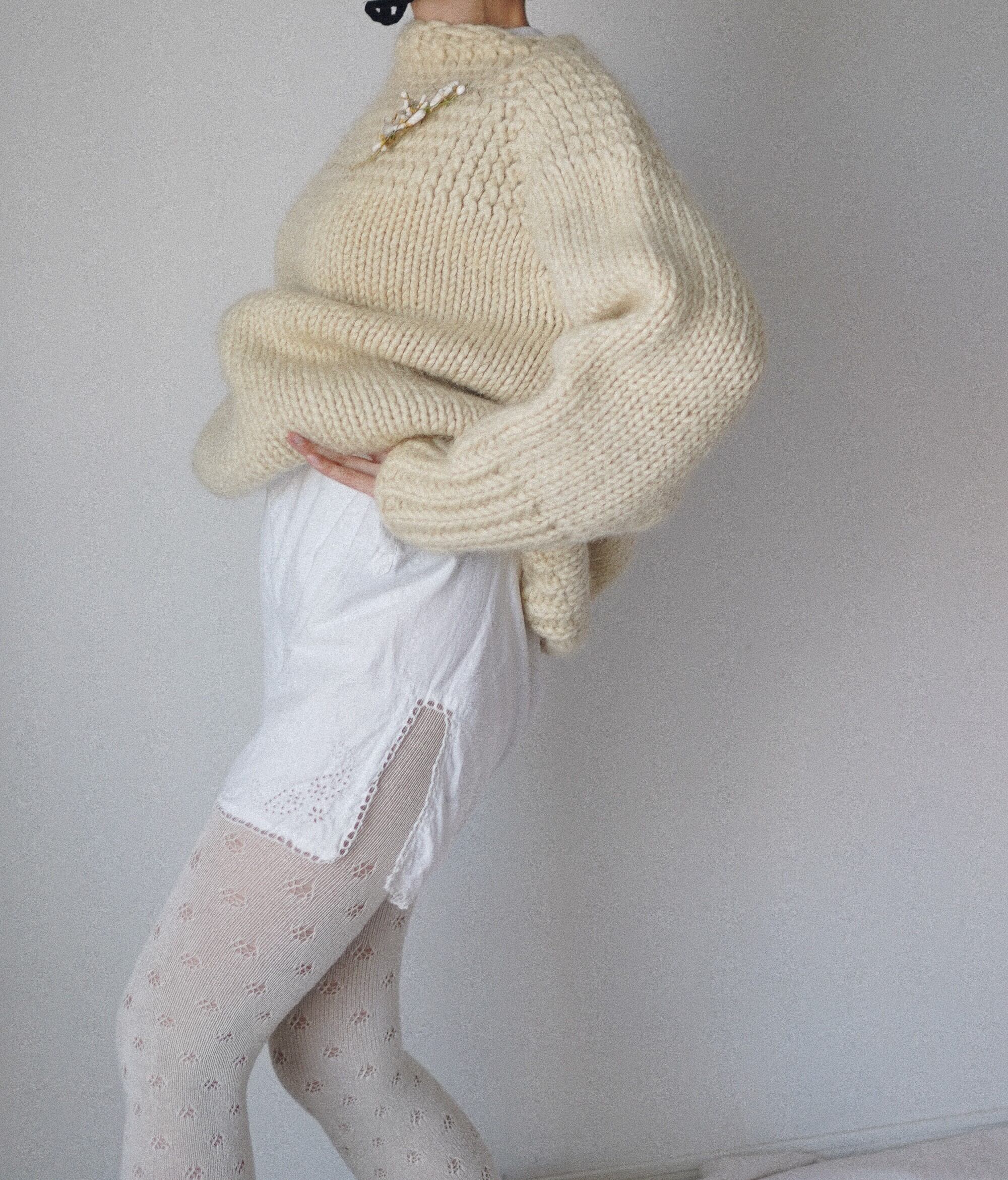 買い付け国はハンガリー。たくさんの古いアイテムをcollectionされているマダムから譲っていただきました。あまり見かけないタイプのpettipants。1940年頃のお品で、当時大切に使用されていたそう。控え目な愛らしいカットワークに、ざっくりとおおきく入るサイドスリットがチャームポイント。ボトムの上に重ねたり、タイツと合わせたりと、様々に遊べるアイテムです。