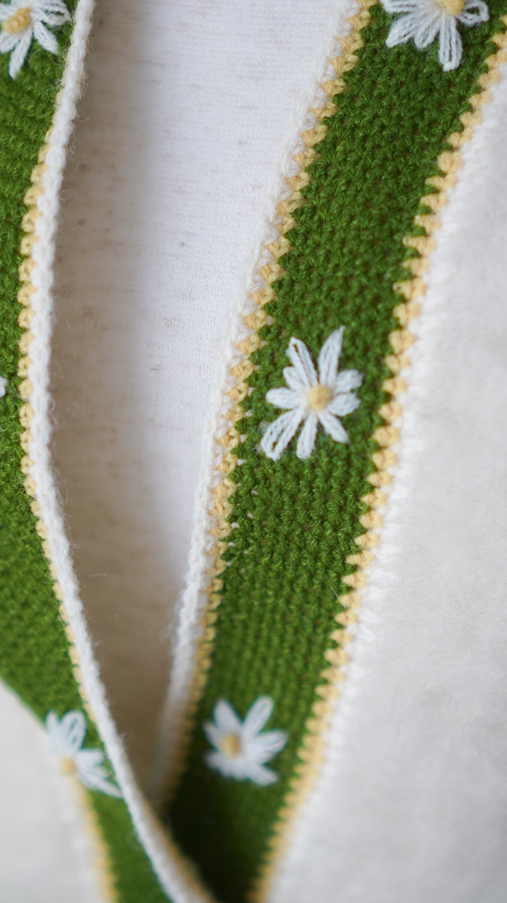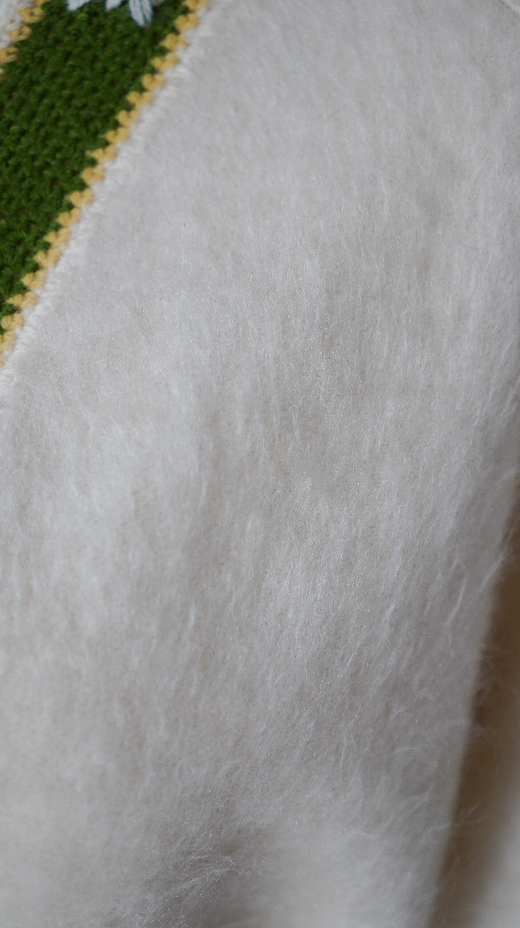 ハンガリーで出会ったすてきなマダムのクローゼットからシリーズ。チロリアンな雰囲気がキュートなイタリア製のアクリルカーディガン。ウエストマークのできる紐付きがうれしいポイント。