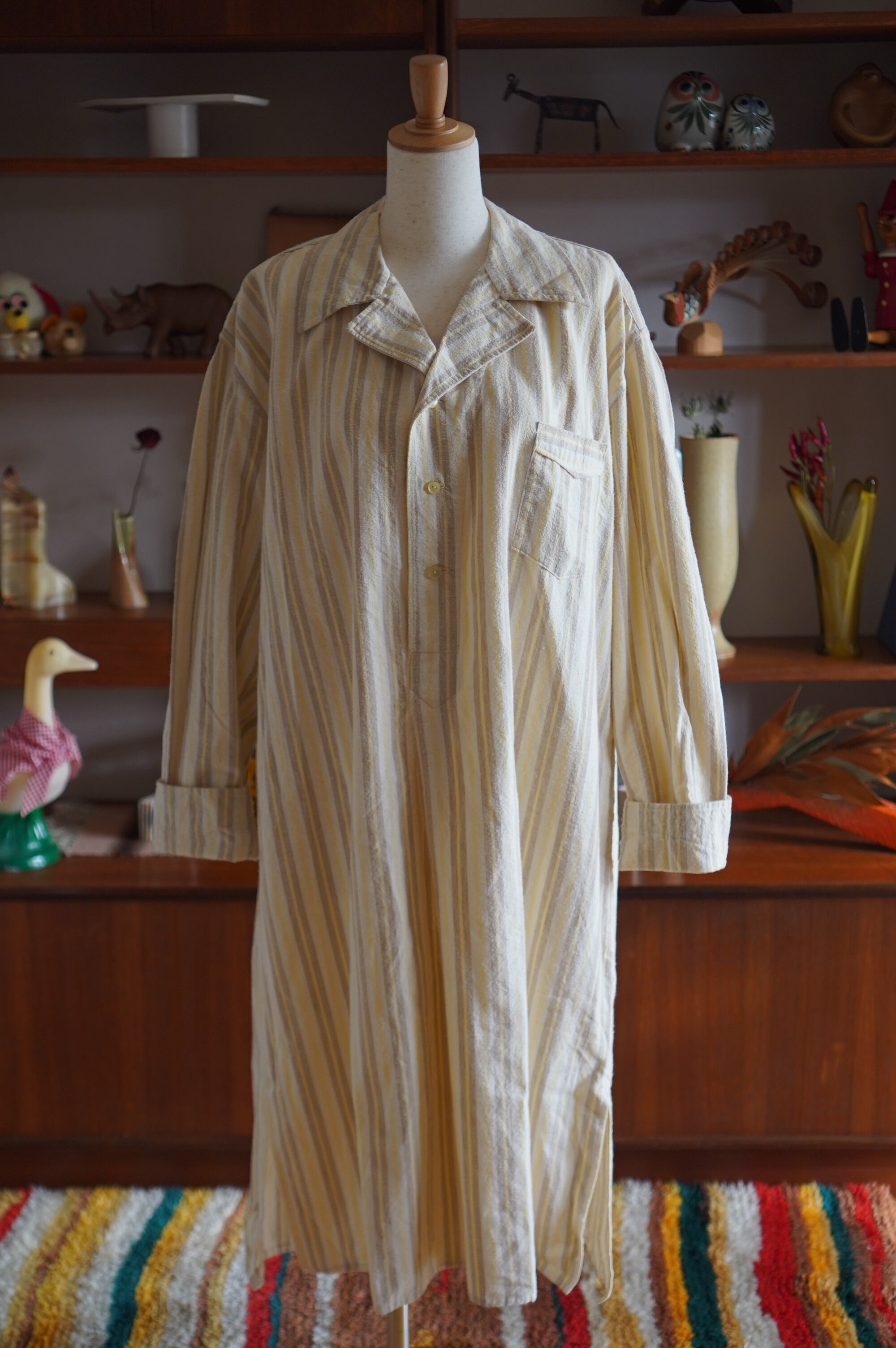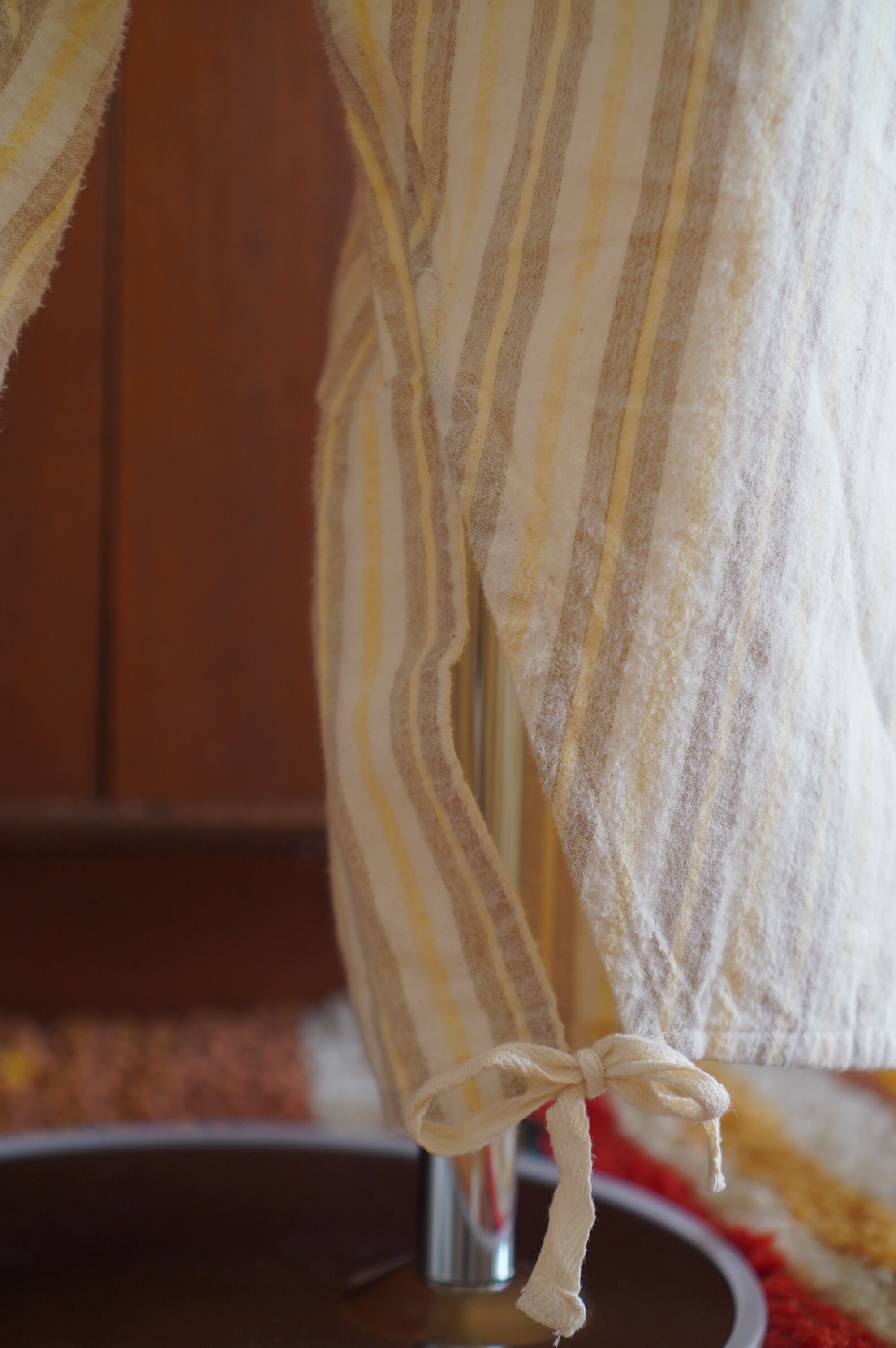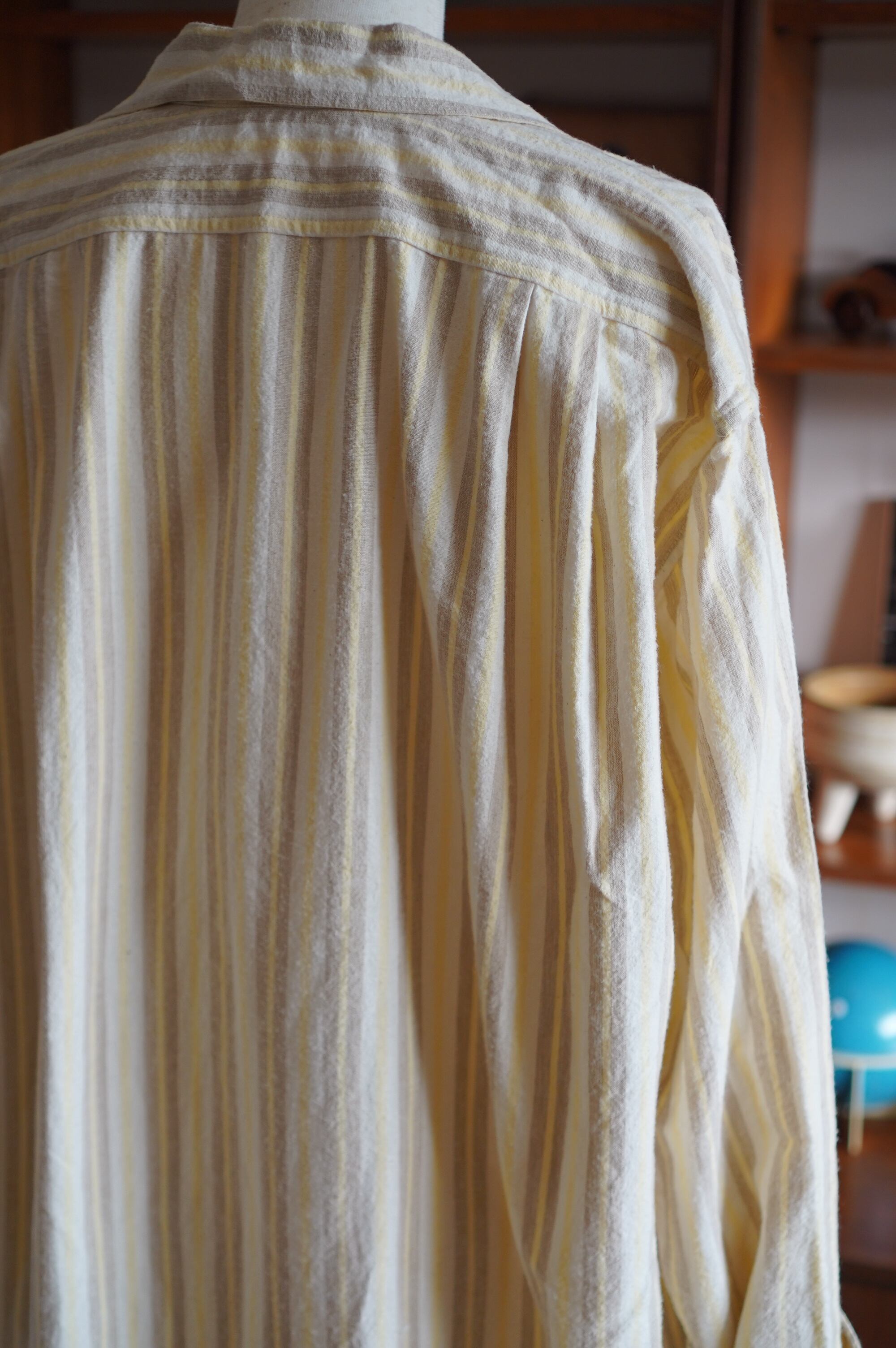 アイボリー地に、ビスケットブラウンとレモンイエローのストライプ柄。優しい雰囲気が漂います。それぞれ単体で着まわすのも楽しそうです。