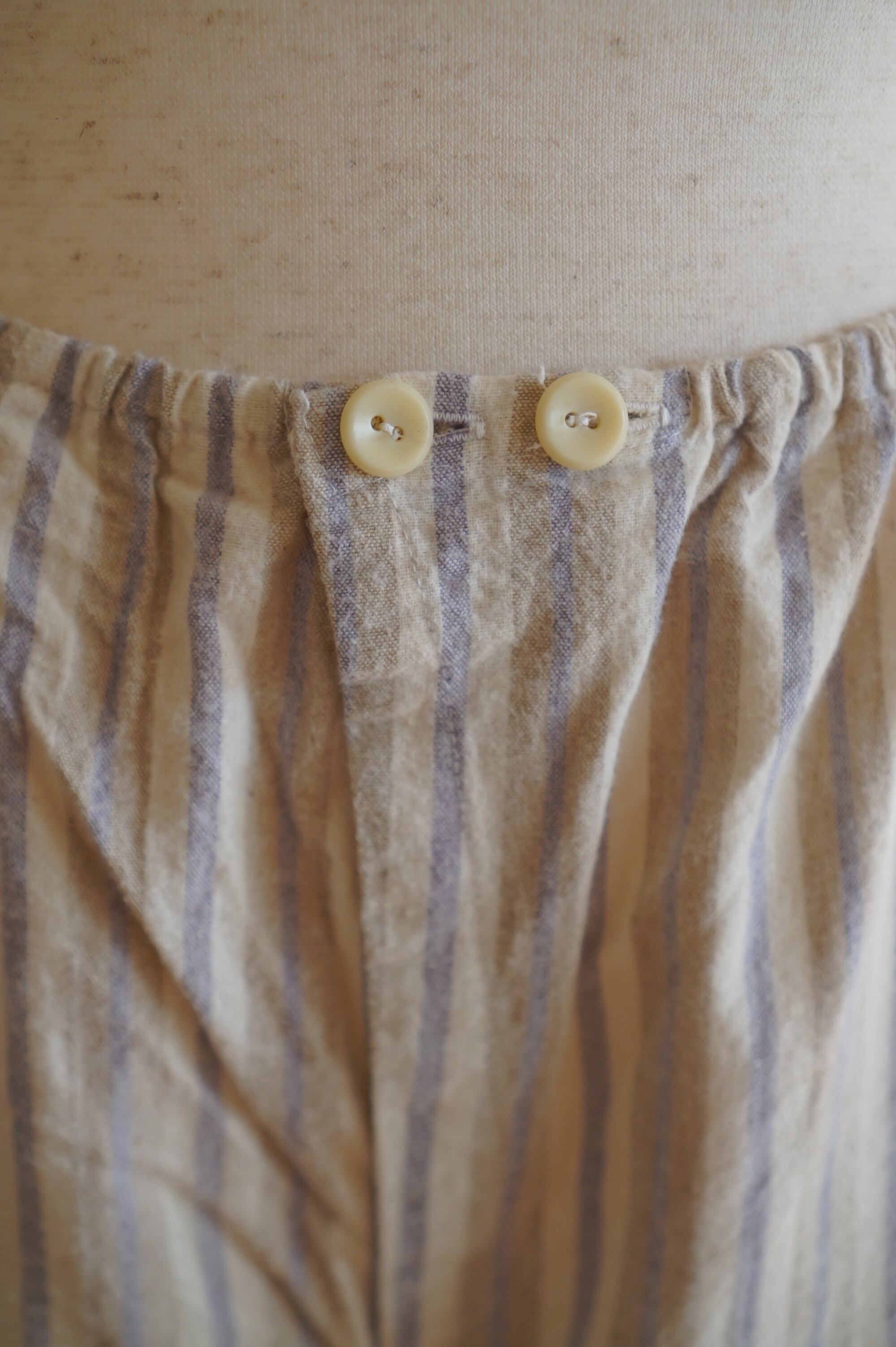 抜け感がでる裾のスリットに、裾口には紐がついています。リボン結びをして、お気に入りの靴下やタイツを見せるのも楽しい。遊びがいのある一着です。