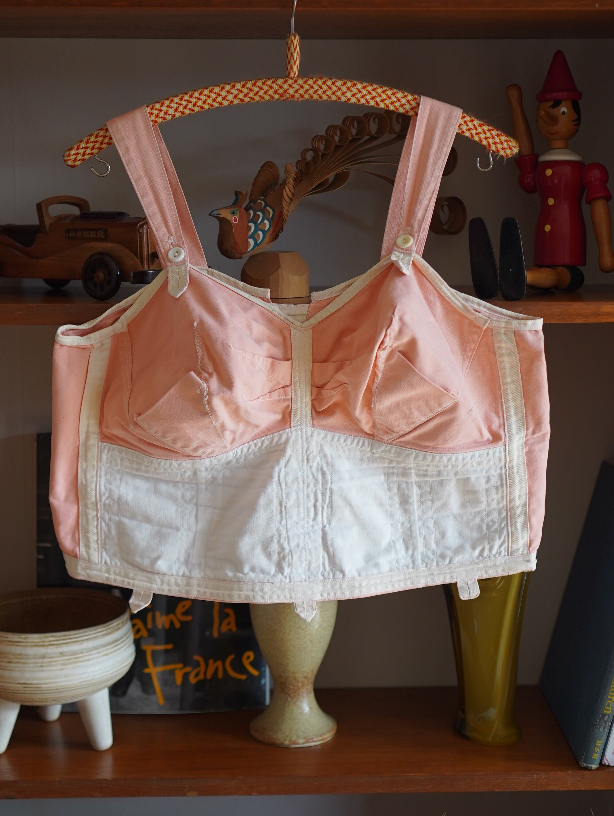 サーモンピンクのカラーが可愛いランジェリービスチェ。