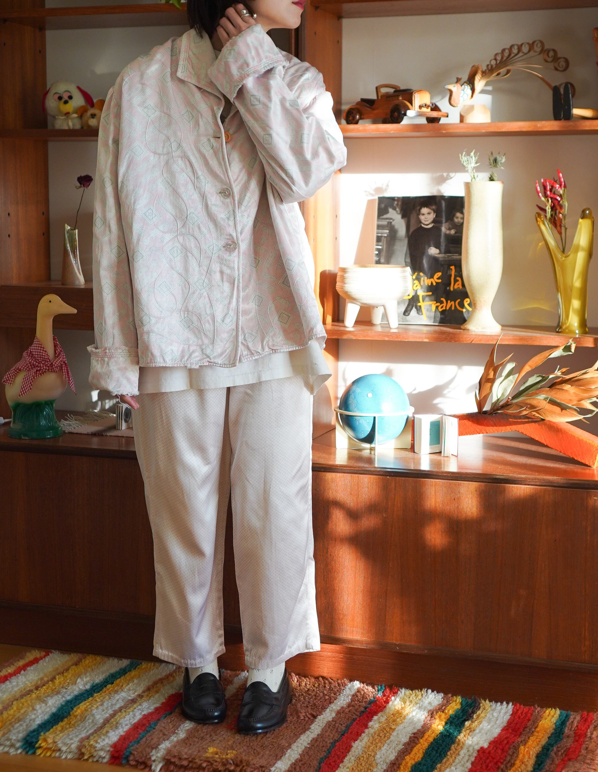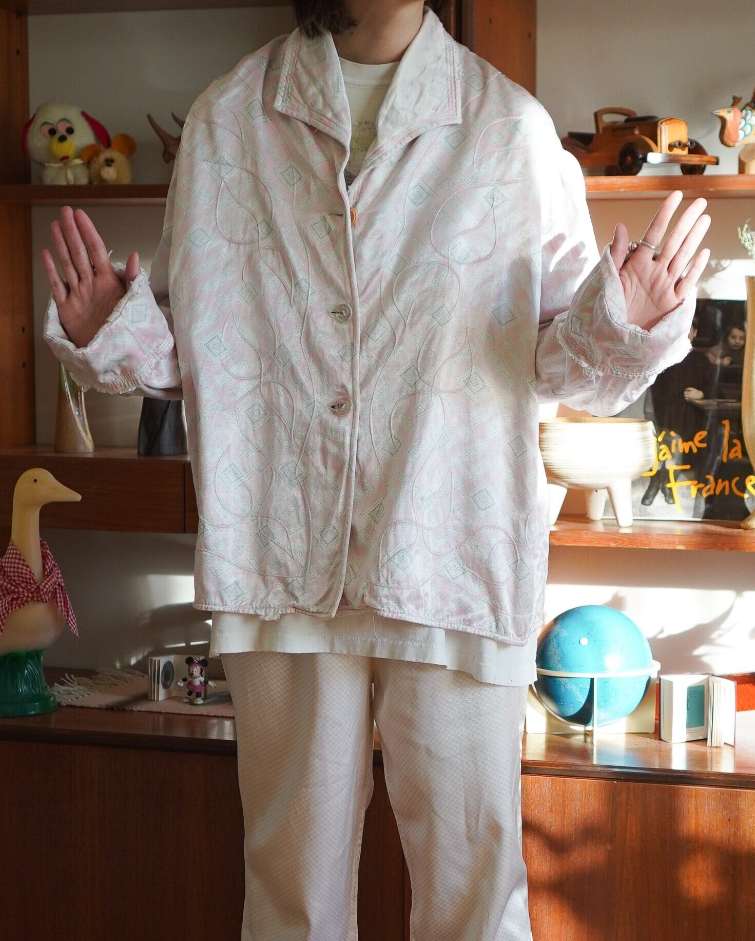 くすみピンクがたまらなくかわいい、50年代頃のサテンパジャマトップス。